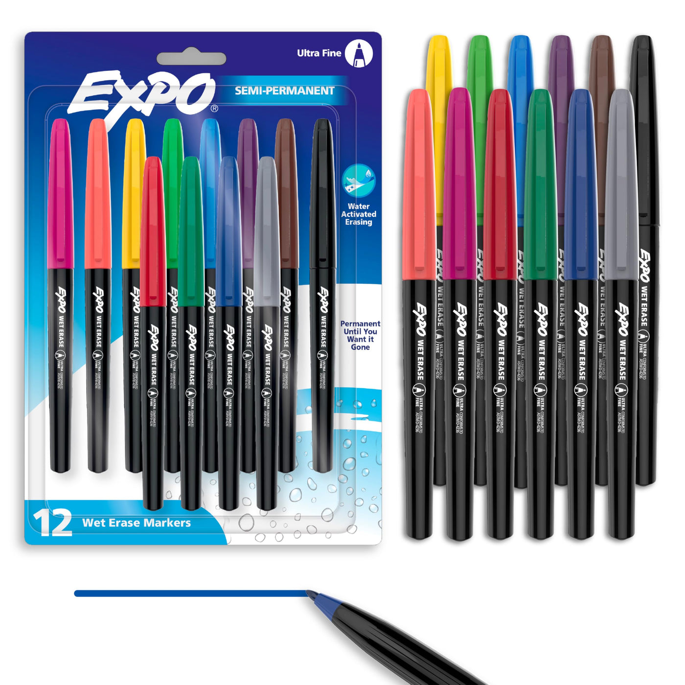 Adapt And Evolve Your Ideas With Ease Using Expo Wet Erase Markers! These Expo Markers Are Permanent Until You Want It Gone. The Smudge-Free Ink Stays Put When Dry, But With Water-Activated Erasing Technology They Wipe Clean With Water! The Ultra Fine Tip Markers Are Great For Precision And Clarity And Perfect For Adding Details And Embellishments To Your Calendar Or Marking On Small Spaces, Whether On Glass, Whiteboards, And Other Non-Porous Surfaces.