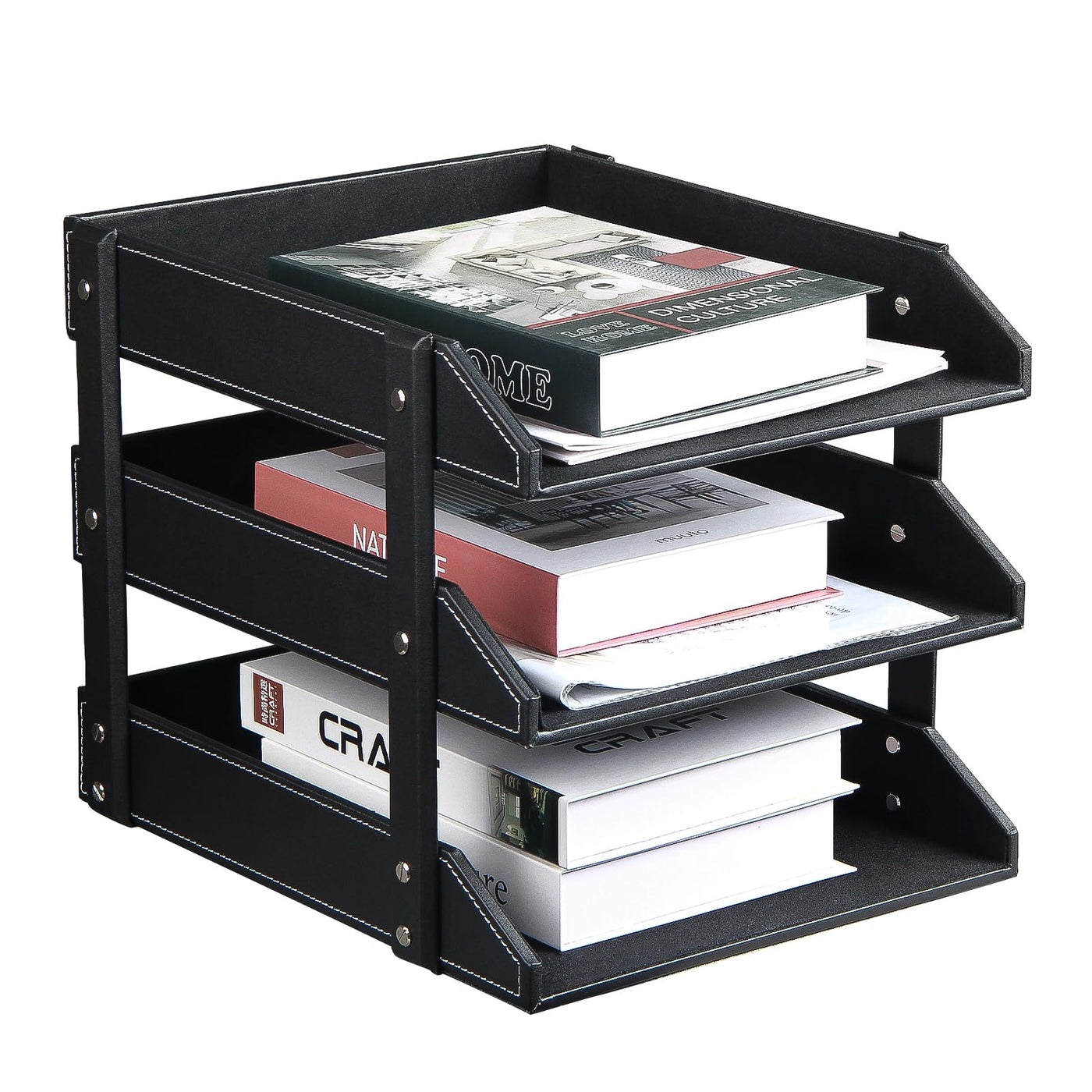 Why Choose Pusu Office Desk Supply Organizer Leather Stacking Letter Trays? ? Made Of High Density Wooden Board And Pu Leather, Durable And Sturdy ? Each Layer Holds Up To 500 Pages Of Legal A4 Files Or Copy Papers Stackable Tray And Space Saving ? Handy Rack To Hold Magazines?Files/Notebooks/Pictures/Invoice/Letter/Ipad And Anything Etc. ? Dimension: Each Tray: 10.62' Width X 13.18' Depth X 2.76' Height; The Whole Item: 10.62' Width X 13.18' Depth X 10.62' Height Tips 1.For Shipping Safety, When You Receive The Package And Unpack It, You Will Get What Is Separate Accessories. However, No Worry About That And Just Follow Above Installation Guide To Install Our 3-Layer Magazine File Sorter Document Tray. 2.In Case Of Missing Accessories, Please Feel Free To Ask For Replacement And We Would Respond In 12 Hours And Ship Out For Free.