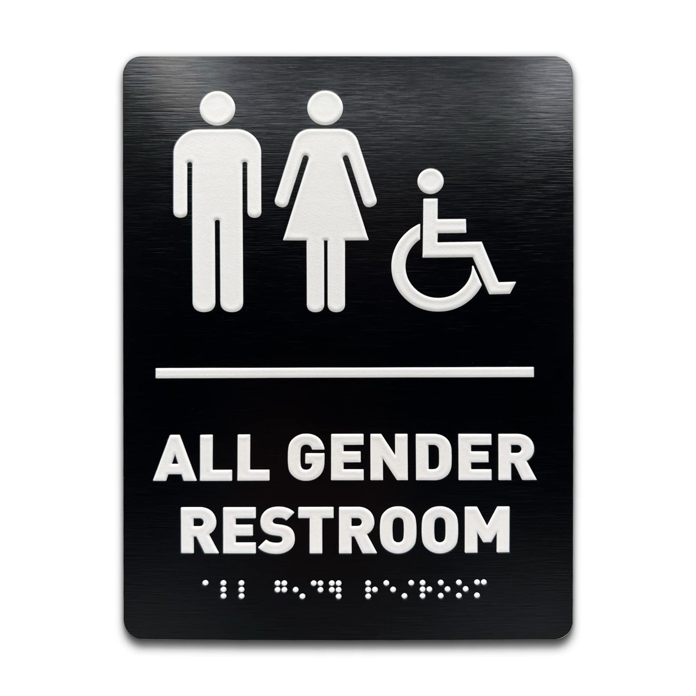 About Gds Architectural Signage Solutions From Creative Conception To Final Installation, Gds Has Developed The Most Effective And Efficient Process For Outfitting Any Built Environment With Wayfinding And Identification Signage For Both Interiors And Exteriors. Our Mission Is To Navigate Commercial Environments Through Strategic Planning And Tangible Solutions. Modern Bathroom Sign To Match Any Commercial Interior Our Restroom Signage Is The Perfect Way To Help Direct All Of Your Employees, Guests, And Patrons To The Proper Facility In A Commercial Space. Their Minimalistic Design And Contemporary Metallic Finishes Match The Interior Style Of Any Workspace, Hotel, Restaurant, Retail Store, Or Commercial Environment. Simple & Damage-Free Installation Our Commercial Restroom Signs Can Easily And Quickly Be Mounted To Any Smooth, Flat Wall Without Damaging Its Surface. These Bathroom Signs For Businesses Should Be Installed On The Wall That Is Adjacent To The Side Of The Door With The Handle Or Latch. And Thanks To Our Included Adhesive Strips, You Can Securely Hang The Sign With Ease - No Additional Tools Required! Specifications Color: Brushed Black Dimensions: 6' W X 8' H