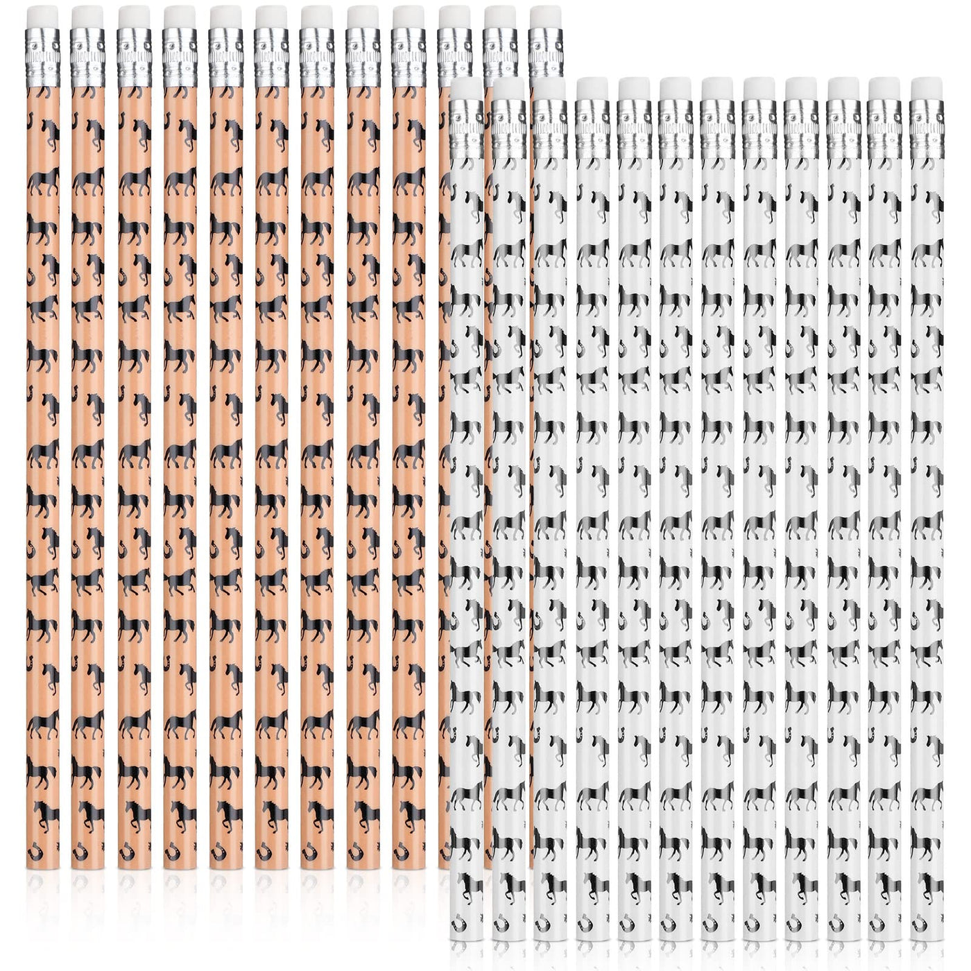 Gersoniel 24 Pieces Horse Pencils Kids Pencils With Erasers School Wood Pencil Novelty Pencils For Horse Racing Party Favors Tea