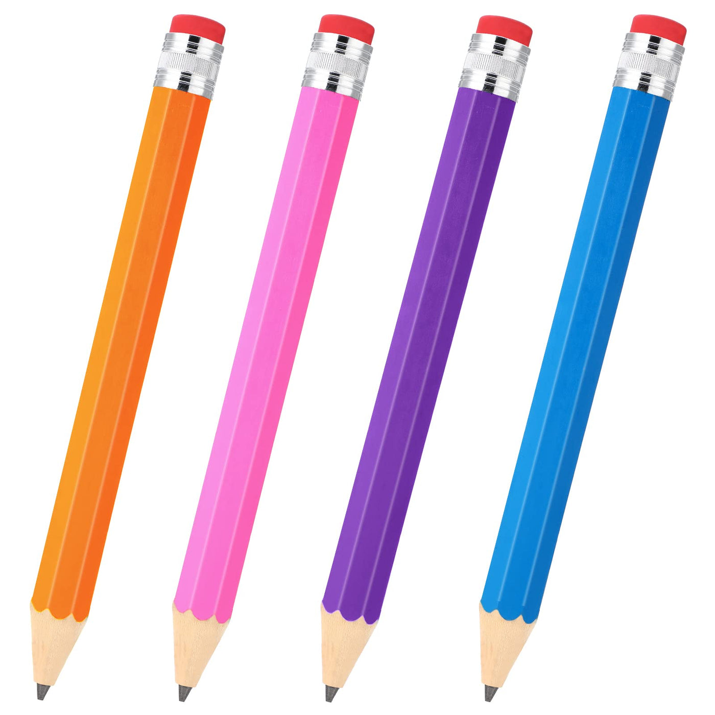 Gersoniel 4 Pieces Wooden Jumbo Pencils Big Novelty Pencil With Cap And Eraser Wood Giant Pencil Large Adorable Diy Woodworking