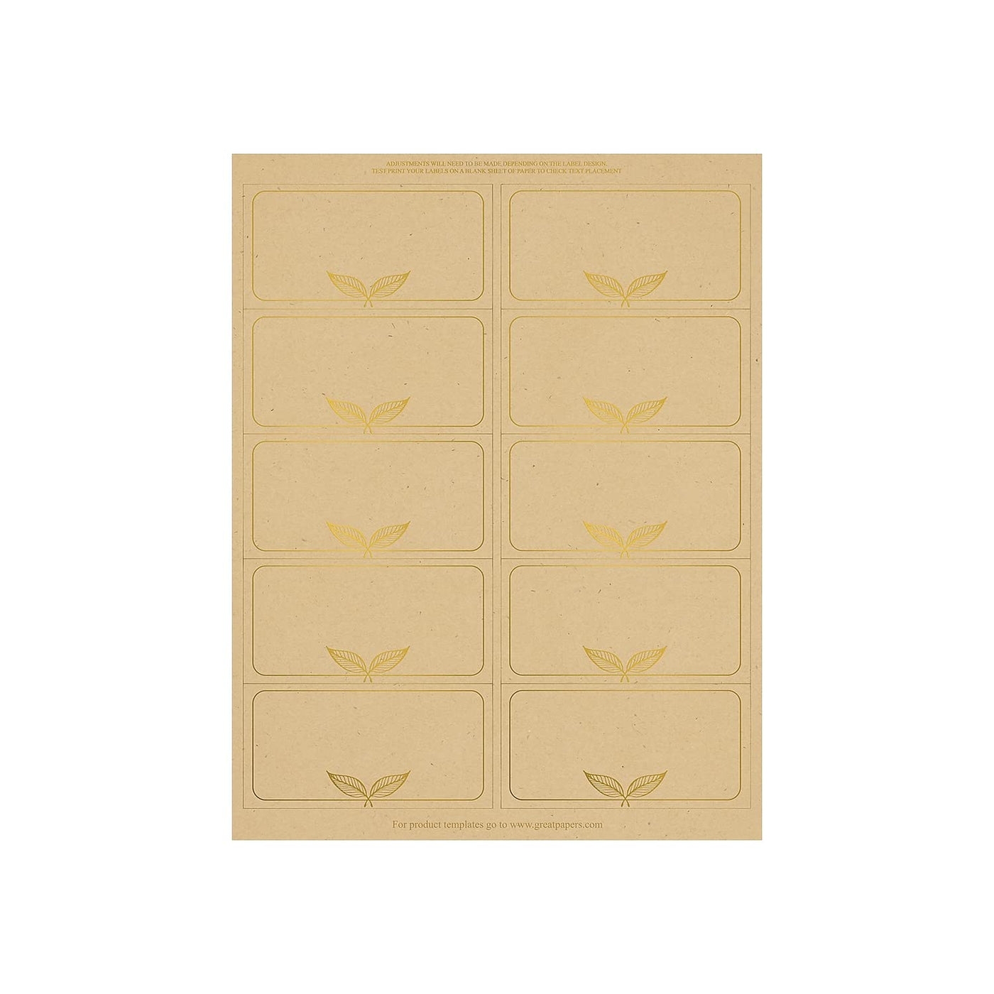Great Papers! Kraft With Gold Gift Tag - Shipping Label, 8.5' X 11' Sheet/2' X 4' Label, 5 Sheets/50 Labels (2019113)
