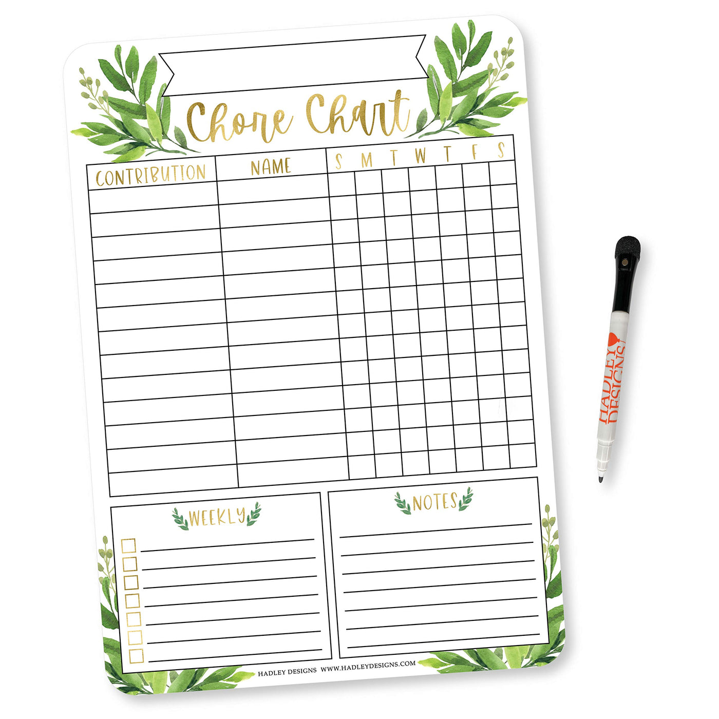 Hadley Designs Gold Greenery Family Chore Chart For Adults, Magnetic Reward Chart For Toddlers At Home, Boho Chore Reward Chart