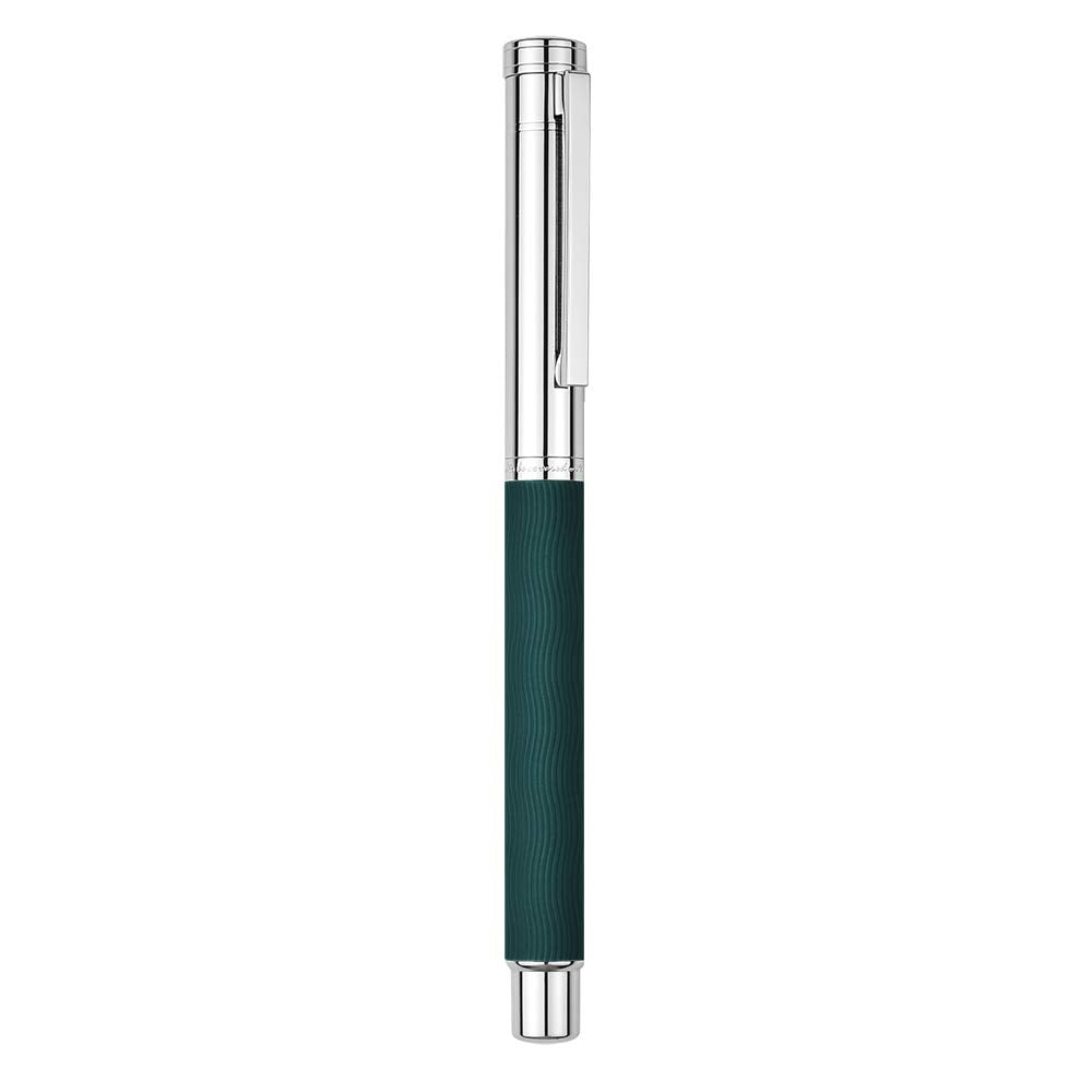 Hongdian 1843 Navigator Fountain Pen Fine Nib Solid Metal, Green Ripple Pattern With Refillable Converter And Metal Pen Case