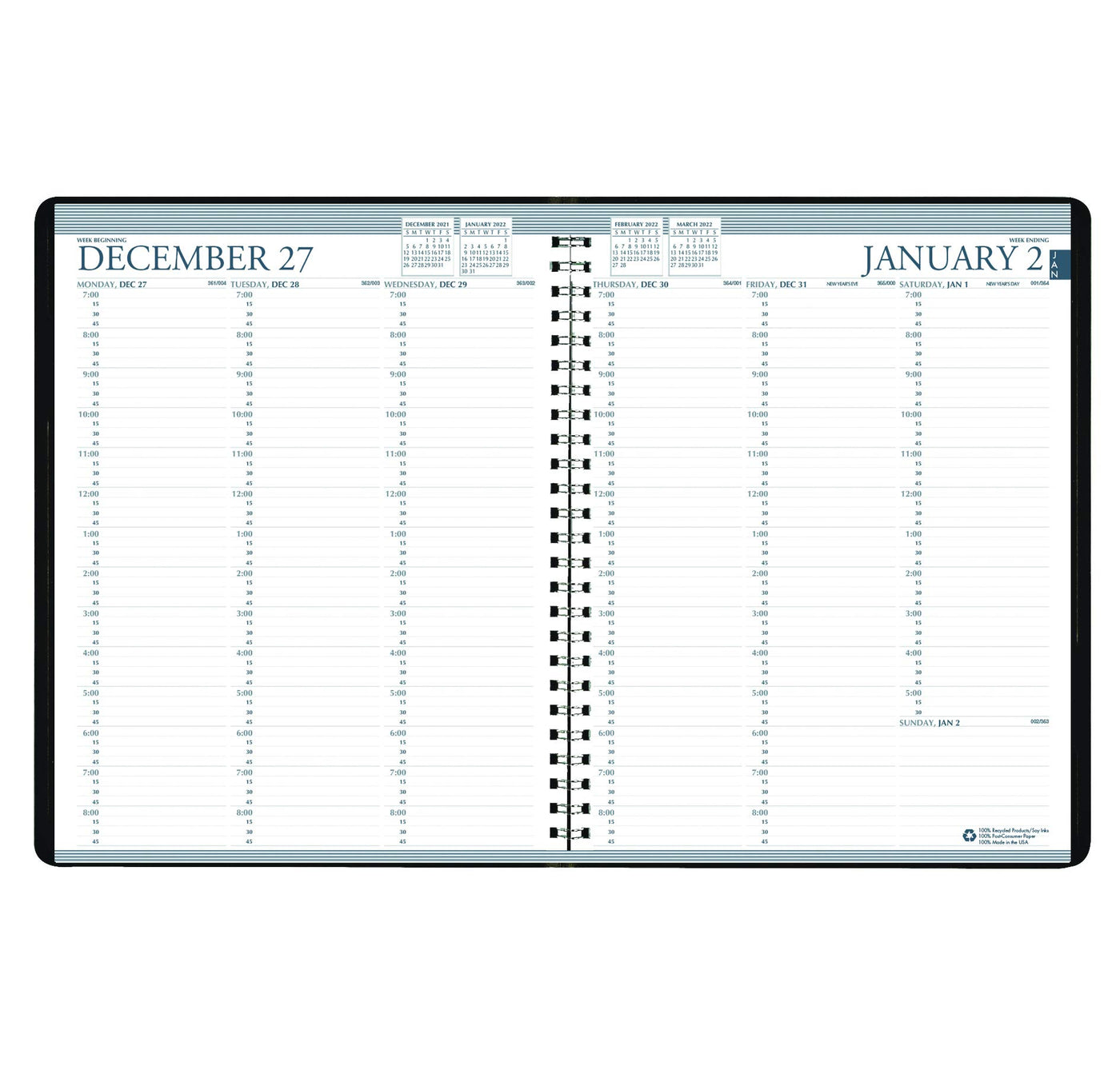 Since 1919, House Of Doolittle Has Manufactured Quality Dated Products Made In The United States That Help You Be More Productive During Your Daily Planning Activities. In 1989 We Made The Commitment To Produce All Of Our Products Using Recycled Paper And Materials. The House Of Doolittle Two-Year Professional Weekly Planner Has 24 Months January 2022 To December 2023 With A Black Embossed Leatherette Wirebound Cover. The Vertical Weekly Format Contains Quarter-Hourly Appointments. The Week Starts On Monday With One Week Per 2 Page Spread And A Vertical Format Of One Weekday Per Column. This Personal Planner Is Geared For A Teacher, Student, Mom, Dad Or Any Professional Who Is Looking To Keep Their Life And Tasks Organized. Other Products For The Teacher Or Student From House Of Doolittle Include Desk Pads, Wall Calendars, Lesson Planners, Class Record Books, Assignment Books, Monthly Appointment Planners And Weekly Appointment Planners. Go Green With House Of Doolittle Products, As We Use 100% Recycled Paper Containing 100% Post-Consumer Waste With Soy Inks, 50% Recycled Cover Material, And 90% Recycled Wire. All Of Our Products Are Manufactured In The Usa And Are Fsc Certified. Since 1989 House Of Doolittle Has Donated 5% Of Its Profits To Organizations That Are Working To Create A More Sustainable Environment.