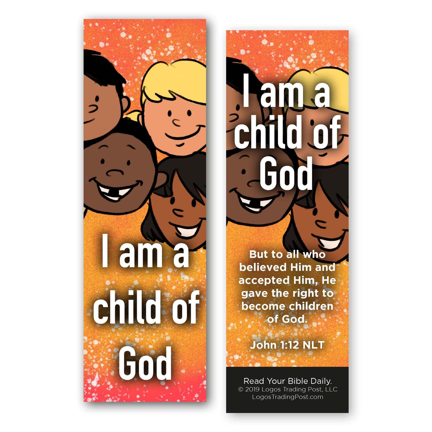 I Am A Child Of God, John 1:12, Bulk Pack Of 25 Christian Bookmarks For Kids, Childrens Bible Verse Book Markers, Sunday School