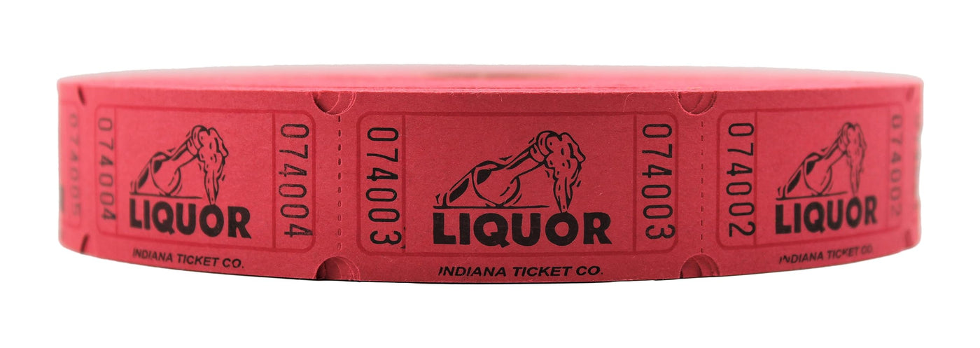 Indiana Ticket Co. Red Liquor Roll Tickets, 2000 Per Roll, Single Roll, 1X2 Tickets For Free Liquor Giveaways
