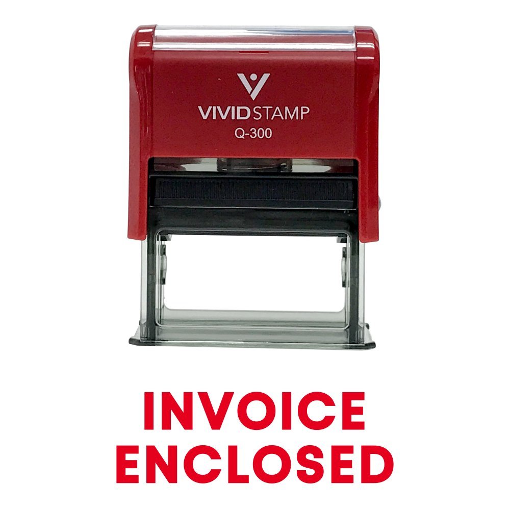 Invoice Enclosed Self Inking Rubber Stamp (Red Ink) - Large