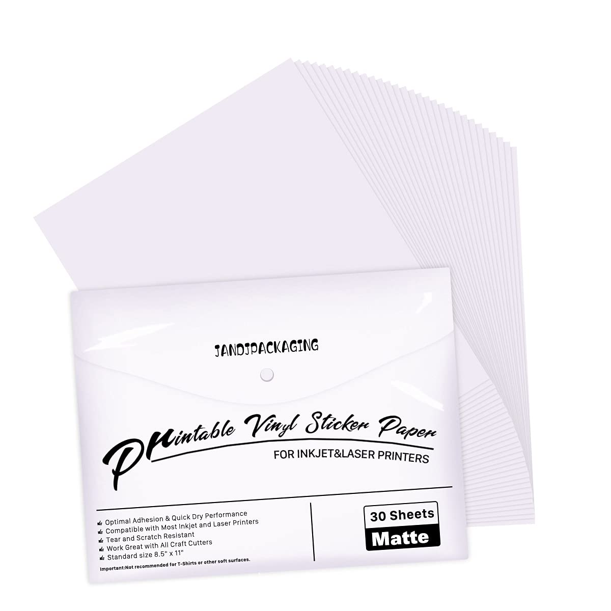 Jandjpackaging Printable Vinyl Sticker Paper Is A Permanent Printable Vinyl That You Can Print On Using Your Inkjet Printer. You Can Use It For Car Decals, Mugs, Tumblers, Laptops, And Any Hard Smooth Surface Indoors Or Outdoors. What Makes Printable Vinyl So Awesome Is That It Can Save You A Lot Of Time And Energy From Having To Do Complex Layering, Especially If You Are Working With Lots Of Details Or Smaller Projects. You Can Print On The Vinyl Sticker Paper Using Your Own Inkjet Printer And Cut It Out Using Your Silhouette Cameo Or Cricut Explore Or Your Other Favorite Die Cut Machine.It Gives You Endless Possibilities Using Your Home Printer And Cut Machine To Print And Cut Out Images, Patterns - Even Photos! Package: 30X Matte White Printable Vinyl