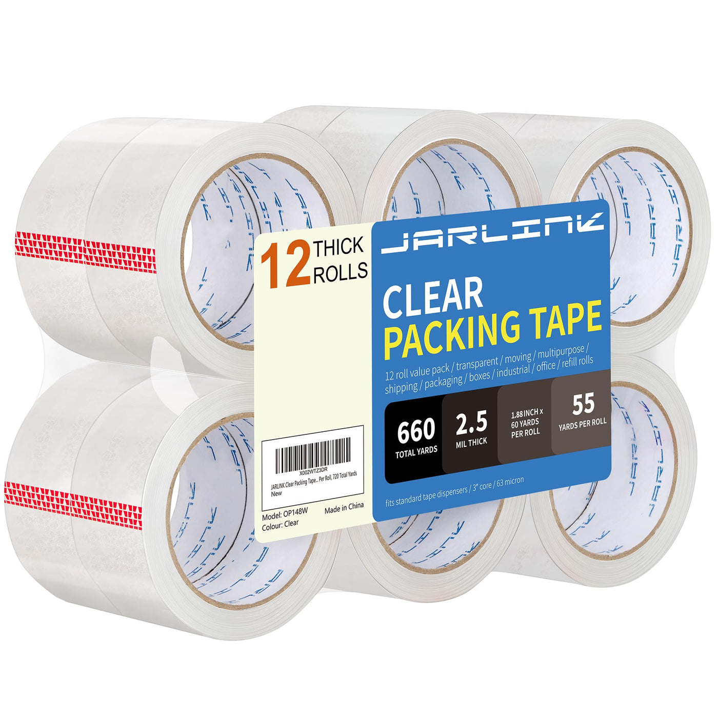 Jarlink Clear Packing Tape (12 Rolls), Heavy Duty Packaging Tape For Shipping Packaging Moving Sealing, 1.88 Inches Wide, 55 Yar