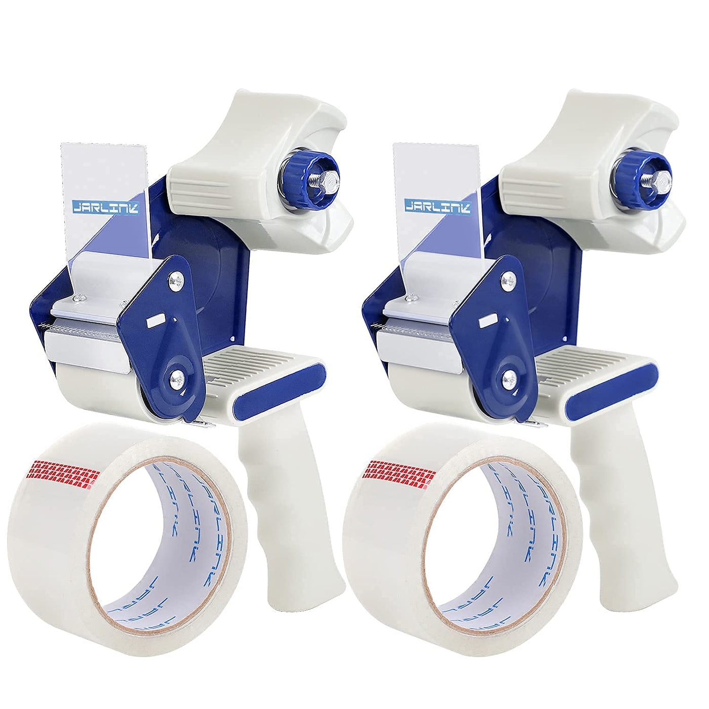 Jarlink Packing Tape Dispenser Gun (2 Pack) With 2 Rolls Tape, 2 Inches Lightweight Industrial Side Loading Tape Dispenser For S