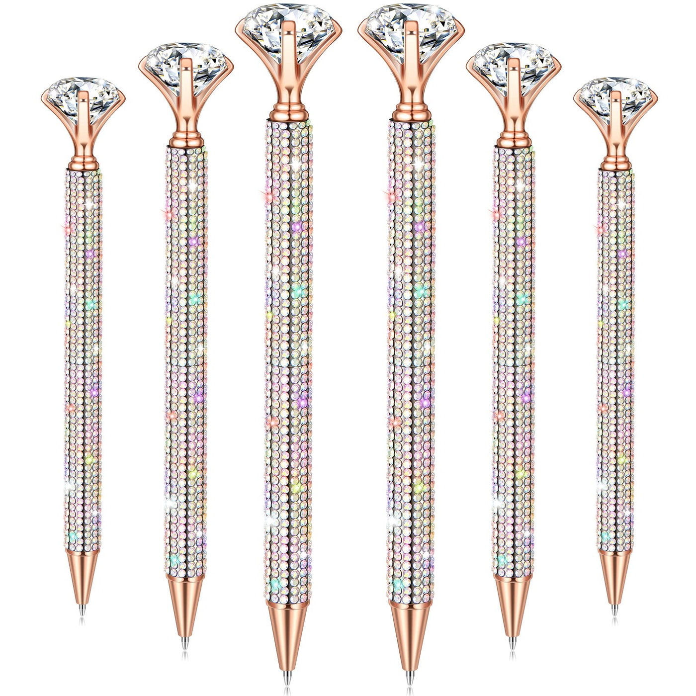 Jeyiour 6 Pcs Big Diamond Pens With Crystal Bling Rhinestone Pen Metal Diamond Ballpoint Pens Glitter Wedding Bridal Shower Favo