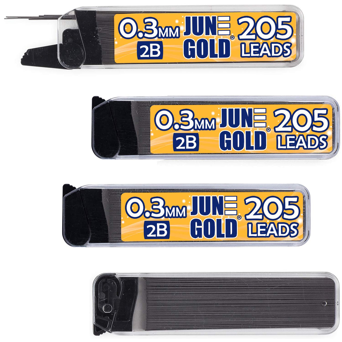 June Gold 820 Pieces, 0.3 Mm 2B Lead Refills, 205 Pieces Per Dispenser, Extra Fine Thickness, Break Resistant Lead/Graphite (Pac