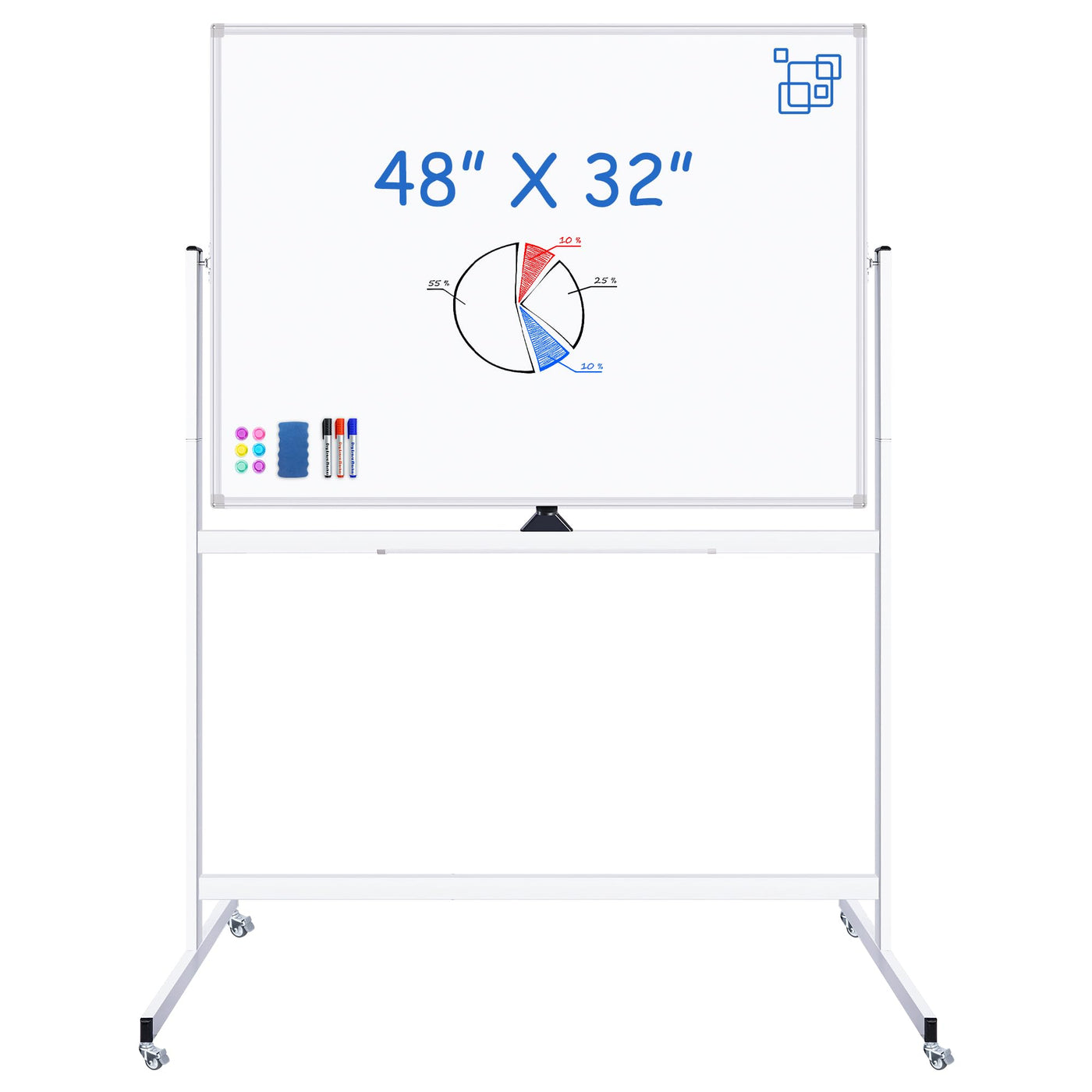 Large Rolling White Board, 48X32 In White Board On Wheels, Maxtek Double-Sided Magnetic Mobile Whiteboard With Stand School Supp