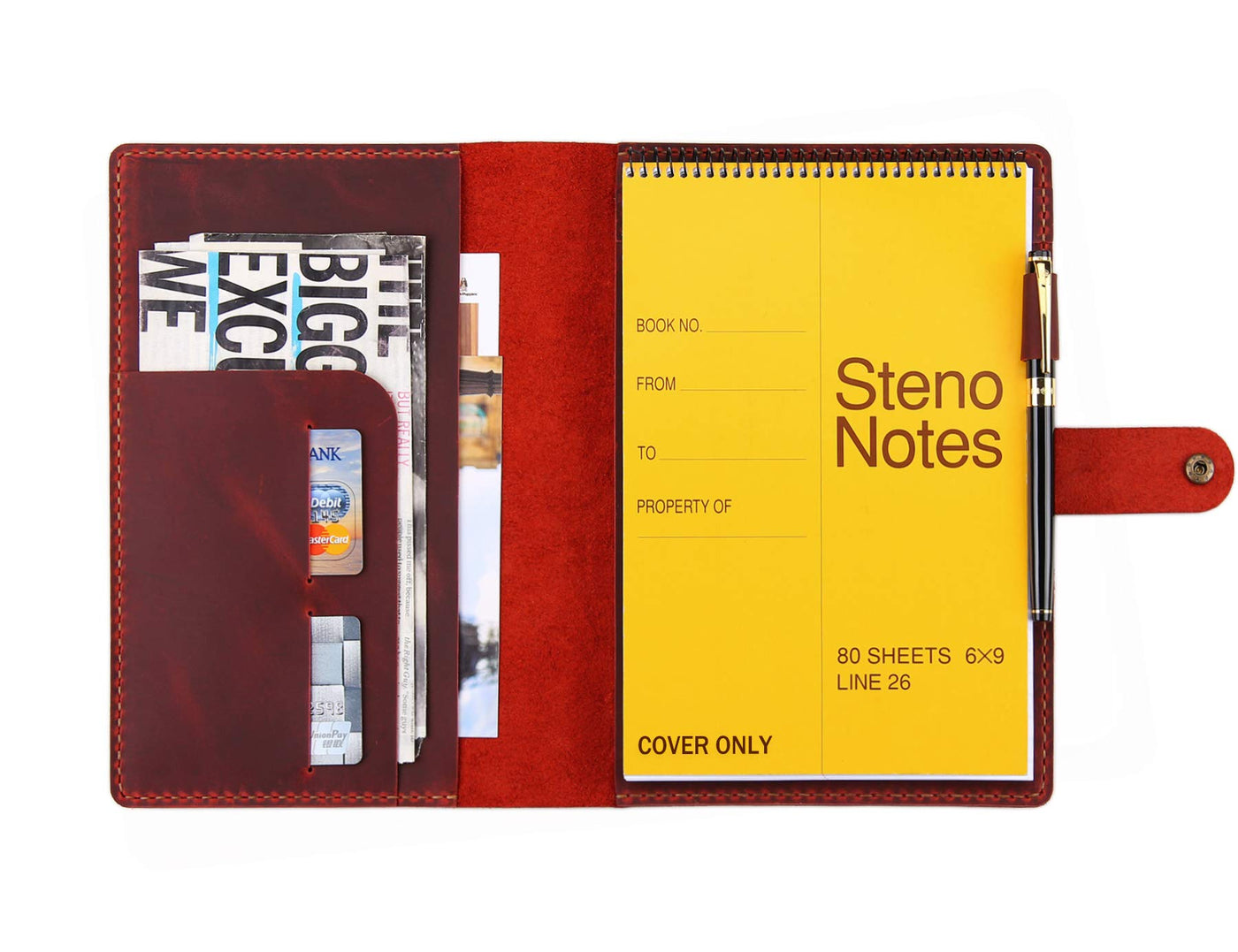 Leather Cover For 6'X9' Steno Notebook, Leather Folio Cover Compatible With 6X9 Spiral Steno Pads, A5 Notebook Organizer With