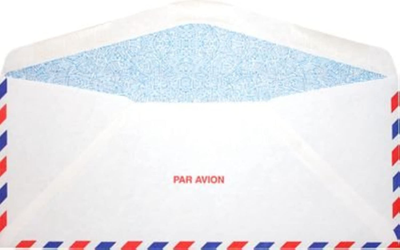 Airmail W/ Security Tint #10 Regular Envelopes Measure 4 ? In X 9 In (4.125 X 9.5 Inches) And Are A Professional Business Envelope Ideal For Mailing Checks, Invoices, Letterhead, Personal Letters, Statements, And Direct Mail And More. Perfect For Business Mailings, Direct Mail, Corporate Mailings, Financial Mailings, Personal Mail And More. Made From Quality, Business Grade 24Lb. Paper. Features A Standard Commercial Back Flap, Sealed By A Moistenable Strip. Simply Seal With An Envelope Moistener Or Tongue. Constructed With A Business Seam Design On The Back Of The Envelope. This Envelope Features A Classic Red And Blue 'Airmail' Design With 'Par Avion' Text. This Envelope Is Made From Quality 24Lb Paper. The Security Tint Adds An Extra Layer Of Confidentiality As This Envelope Does Not Let Any Light Through, So Envelope Contents Are Secure. Opaque And Not See Through. Standard Commercial Flap. . 24Lb. Bond/60Lb Text Paper Stock/105Gsm/0.120Mm Thick. Printable On Off-Set Printing Presses And Some Home Printers. If You'Re Looking For The Perfect Standard Envelope With An Endless Amount Of Uses, #10 Regular Envelopes Are The Perfect Choice And An Amazing Value. Click The Yellow 'Add To Cart' Button Now!