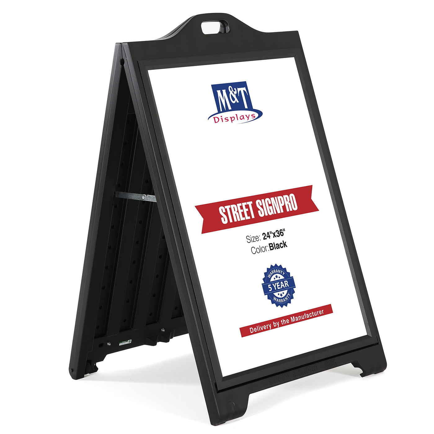 M&T Displays Street Signpro With Lens Protective Cover, 24X36 Inch Poster Black Double Sided Sandwich Board Folding A-Frame Side