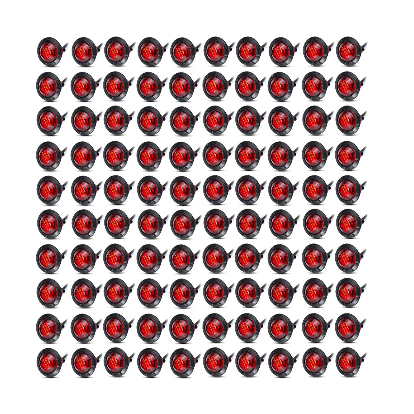 (Pack Of 100) Red 3/4' Inch Mini Round Side Led Marker Light Specifications: Dimensions: 3/4 Inch Number Of Led: 3Led Color: Red Operating Voltage: 12V Housing Material: Plastic Application: Universal,Esp. Pickups,Truck Trailers,Suv And Boat Ect. Functions: Side Marker Lamps / Clearance Lamps / Turn Signal Light / Brake Lights Etc. Package Includes: 100X 3/4'Led Red Side Marker Lights
