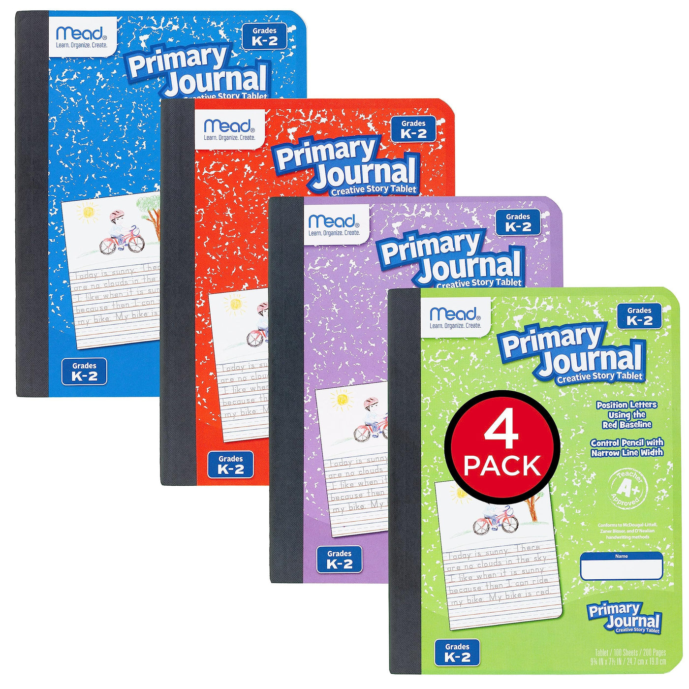 Give Beginning Students The Perfect Place To Practice Their Alphabet And Create Drawings. The Mead Primary Journal Contains 100 Double-Sided Pages To Give Students Plenty Of Space To Work. Its Perfect For Creative Writing Exercises And Is Appropriate For Grade K-2 Level Students. Each Page Measures 7-1/2' X 9-3/4'. The Top Half Of Each Page Is Blank For Artwork Or Doodles, While The Bottom Half Is Printed With Solid And Dotted Line Primary Ruling. The Inside Cover Has A Manuscript Alphabet For Easy Reference. Sewn Binding Is Smooth And Keeps Pages Securely In Place. 4 Pack Includes Purple, Red, Green, Blue.