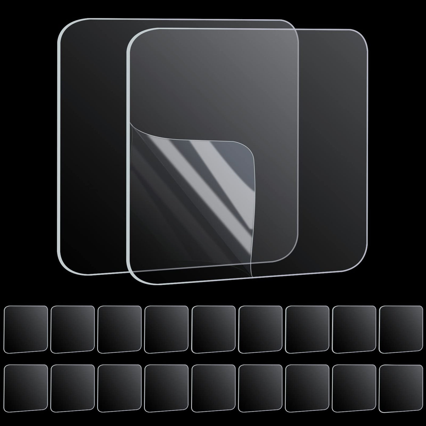 High Adhesive Versatile Double Sided Sticky Pads The Sticky Squares Have High Adhesion And Hold Well To Smooth Surfaces, Applicable To Various Kinds Of Materials, Such As: Plastic,Glass, Ceramics, Wood, And Etc, And Used For Fixing Posters, Models, Decorations Etc. Product Specifications Material: Acrylic Gel Tape Color: Transparent Tape Double Sided. Size: 2-3/8 Inch(60Mm)Double Sided Tape Squares,1/32Inch(0.78 Mm) Thick. Package Includes: 80 Count Tough & Clear Mounting Tape Squares. How To Use 1.Clean The Surface Where The Double-Sided Tape Will Be Applied To And Keep Dry. 2.Take Off One Side Of The Backing Film, And Affix The Double Sided Gripping Pads To The Item. 3.Tear Off The Backing Film On The Other Side Of The Mounting Squares Pads. 4.Put Object On It, Press And Wait A Moment Until They Stick Firmly.