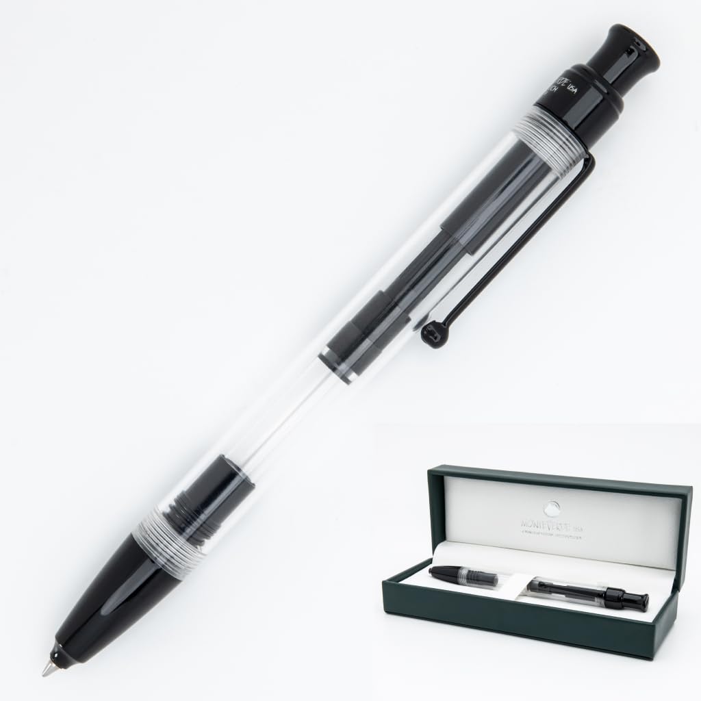 Monteverde Engage One-Touch Liquid Rollerball Demo - Transparent Resin, Retractable, Medium Point - View Ink Levels With Fountai