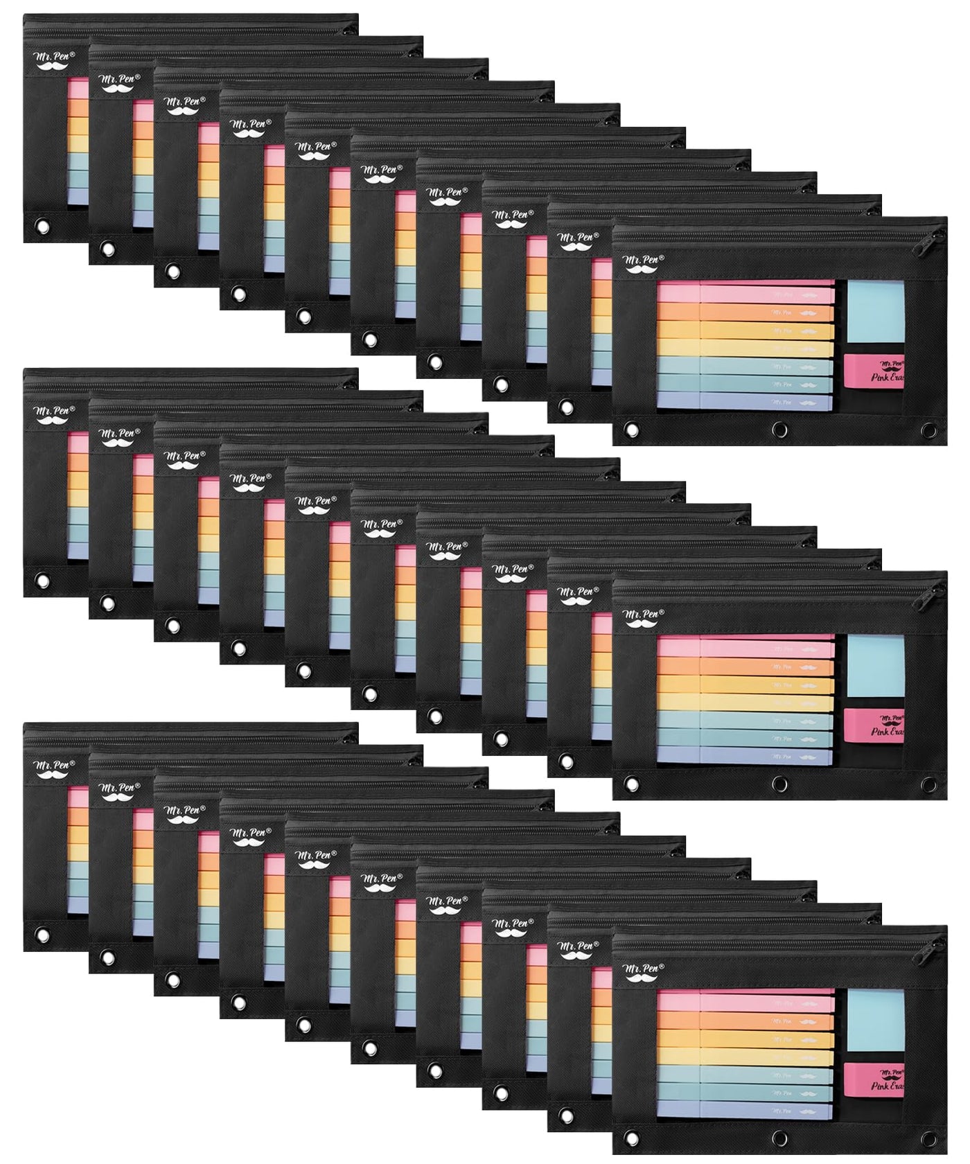 Mr. Pen Pencil Pouches Come In A Convenient Pack Of 30, Making Them Perfect For Classrooms, Offices, Or Large Groups. Each Pouch Features A Durable Design With Reinforced Stitching And A Sturdy Zipper To Keep Your Pens, Pencils, And Other Small Items Securely Stored. The Clear Window On Each Pouch Allows For Easy Identification Of Contents, Saving You Time When Searching For Specific Items. Equipped With Three Metal Grommets, These Pouches Can Be Easily Inserted Into Standard Three-Ring Binders, Making Them Ideal For Students And Professionals On The Go. Made From High-Quality Materials, These Black Pencil Pouches Are Built To Withstand Daily Use, Ensuring Long-Lasting Organization And Convenience.