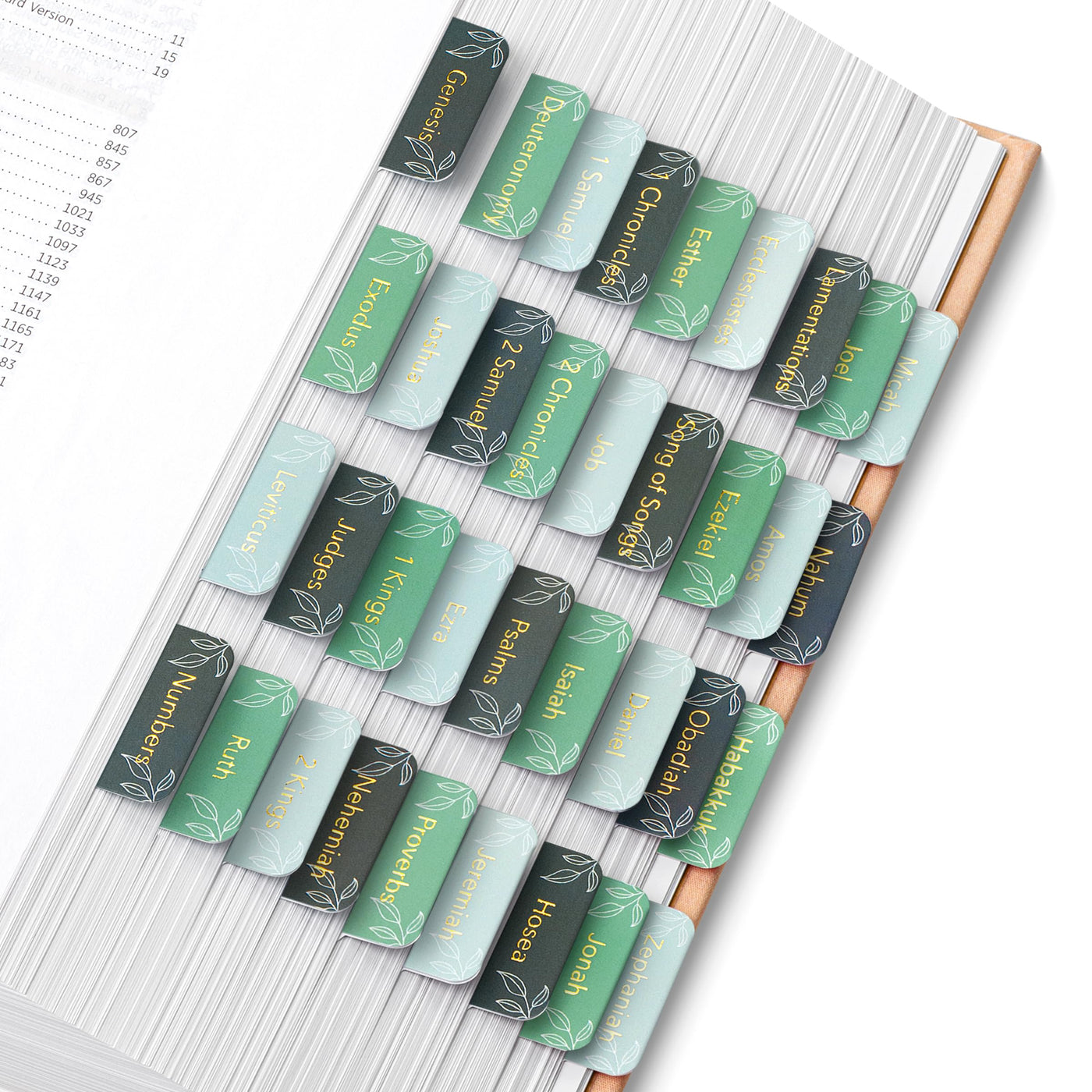 Mr. Pen- Bible Tabs, 75 Tabs, Forest Mist, Gold Foil Embossed Lettering, Laminated Bible Tabs For Women And Men, Bible Tabs For