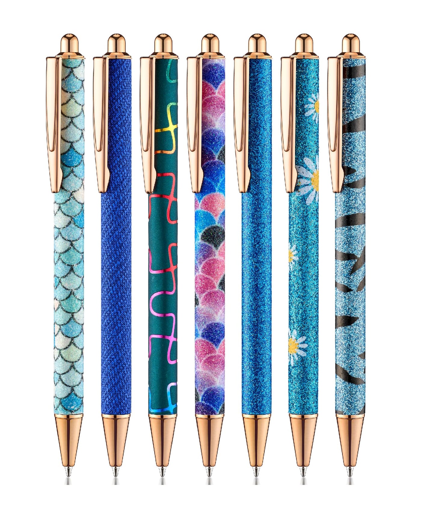 Mr. Pen- Fancy Pens For Women, Azure Elegance, 7 Black Ink Ballpoint Pens With 10 Refills, 1.0Mm, Cute Pens For Journaling, East