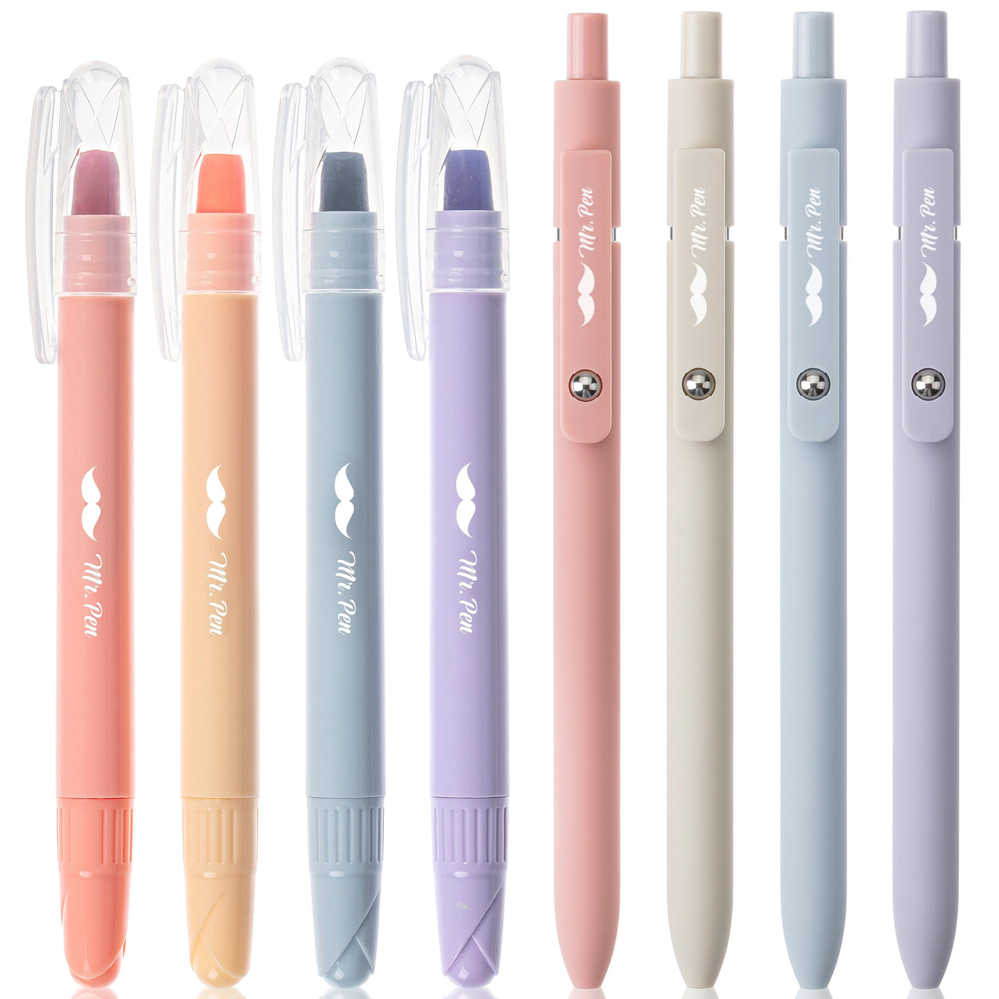 Mr. Pen- Gel Highlighters And Pens, 8 Pack, Pastel Barrel, No Bleed Through, Bible Journaling Kit