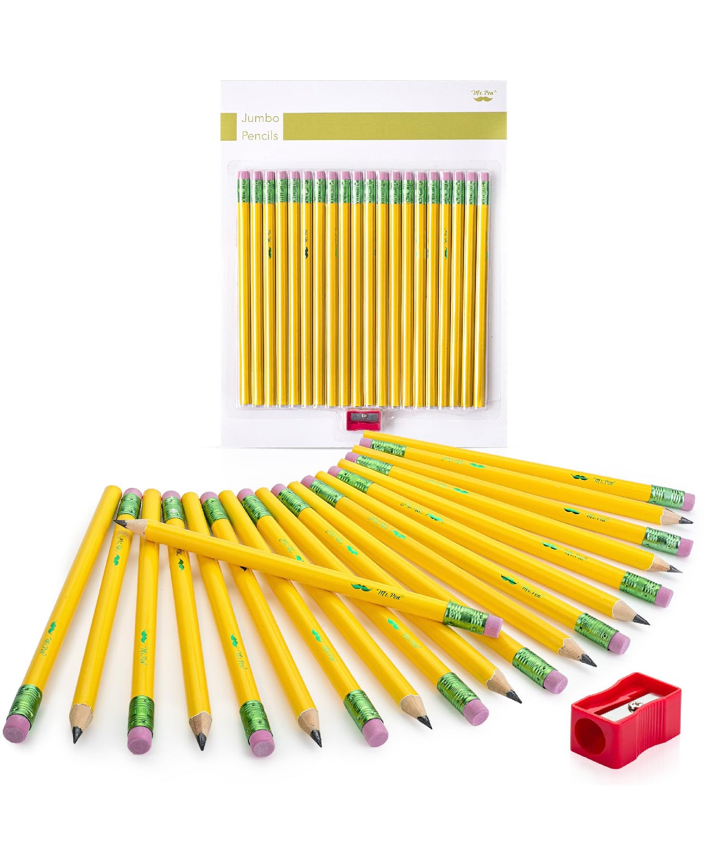Mr. Pen- Jumbo Pencils, 20 Pencils With 1 Sharpener, Fat Pencils For Kids Ages 2-4, Kindergarten Pencils, Thick Pencils For Kids