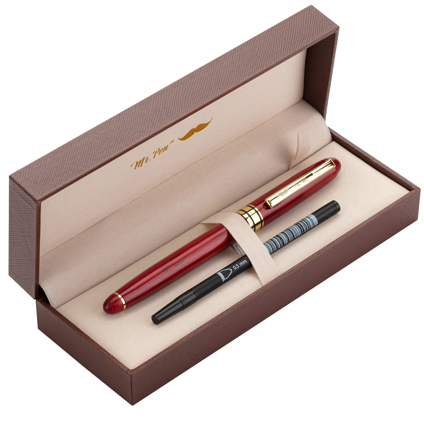 Mr. Pen Wooden Luxury Pen Is Perfect For Anyone Looking For An Enjoyable Writing Experience. The Weight And Balance Are Perfectly Achieved, Making It Easy To Write For Long Periods Of Time. It Comes With One More Class-A Black Ink Than The Standard Pen And Has Been Tested To Ensure It Doesn'T Leak Or Smudge. The Red Wine Color Makes It Perfect For Both Men And Women! This Black Pen Is Perfect For Writing Neatly And Accurately. The Ink Dries Quickly, So You Can Write Smoothly Without Smudging. The Fine Point Makes Precise Lines, And The Comfortable Grip Provides A Smooth Writing Experience. Mr. Pen Luxury Pen Is A Fine Writing Instrument Crafted From The Finest Materials. It'S A Great Gift For Any Occasion And Can Be Used In Many Situations: Keeping Your Journal, Calligraphy, Sketches, Signing Important Documents Or Any Business Contract. It Has Been Designed To Be The Perfect Gift For Any Occasion And Will Look Great In Any Home Or Office. The Pen Comes Presented In A Luxury Carmine Box Which Makes It The Ideal Gift For A Loved One, Family Member, Or Friend.