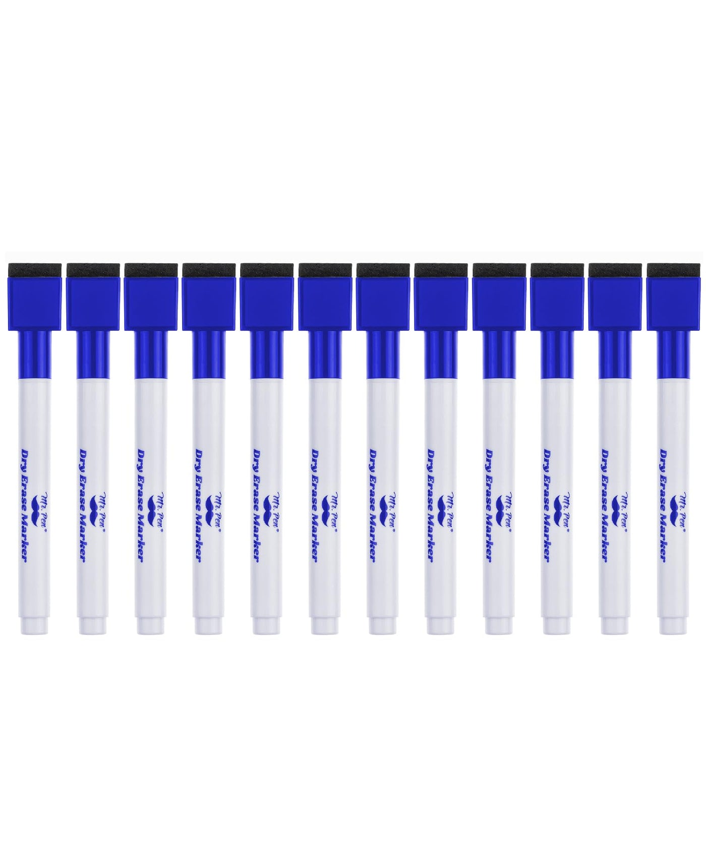 Mr. Pen Magnetic Dry Erase Markers, 12 Pack, Fine Tip, Blue With Eraser Cap