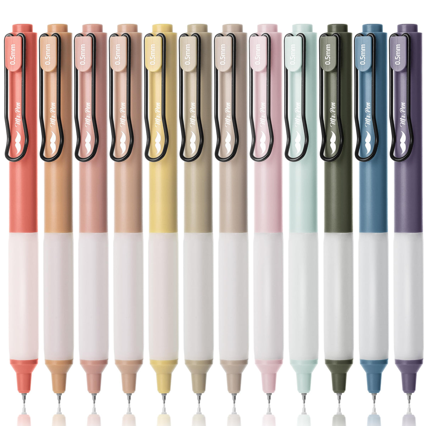 Mr. Pen Retractable Pens Come In A 12-Pack Featuring A Sophisticated, Muted Color Palette, Adding An Element Of Style To Your Writing Instruments. Each Pen Has A 0.5Mm Tip That Delivers Precise And Clean Lines, Perfect For Detailed Writing Tasks. The Black Ink In These Pens Offers A Smooth And Uninterrupted Writing Experience, Ideal For Note-Taking, Journaling, Or Professional Work. With A Retractable Design, These Pens Are Easy To Use With A Click, Protecting The Tip When Not In Use And Eliminating The Need For A Cap. The Pens Are Designed With Comfort In Mind, Featuring An Ergonomic Grip That Makes Them Comfortable To Hold And Use Over Extended Periods.