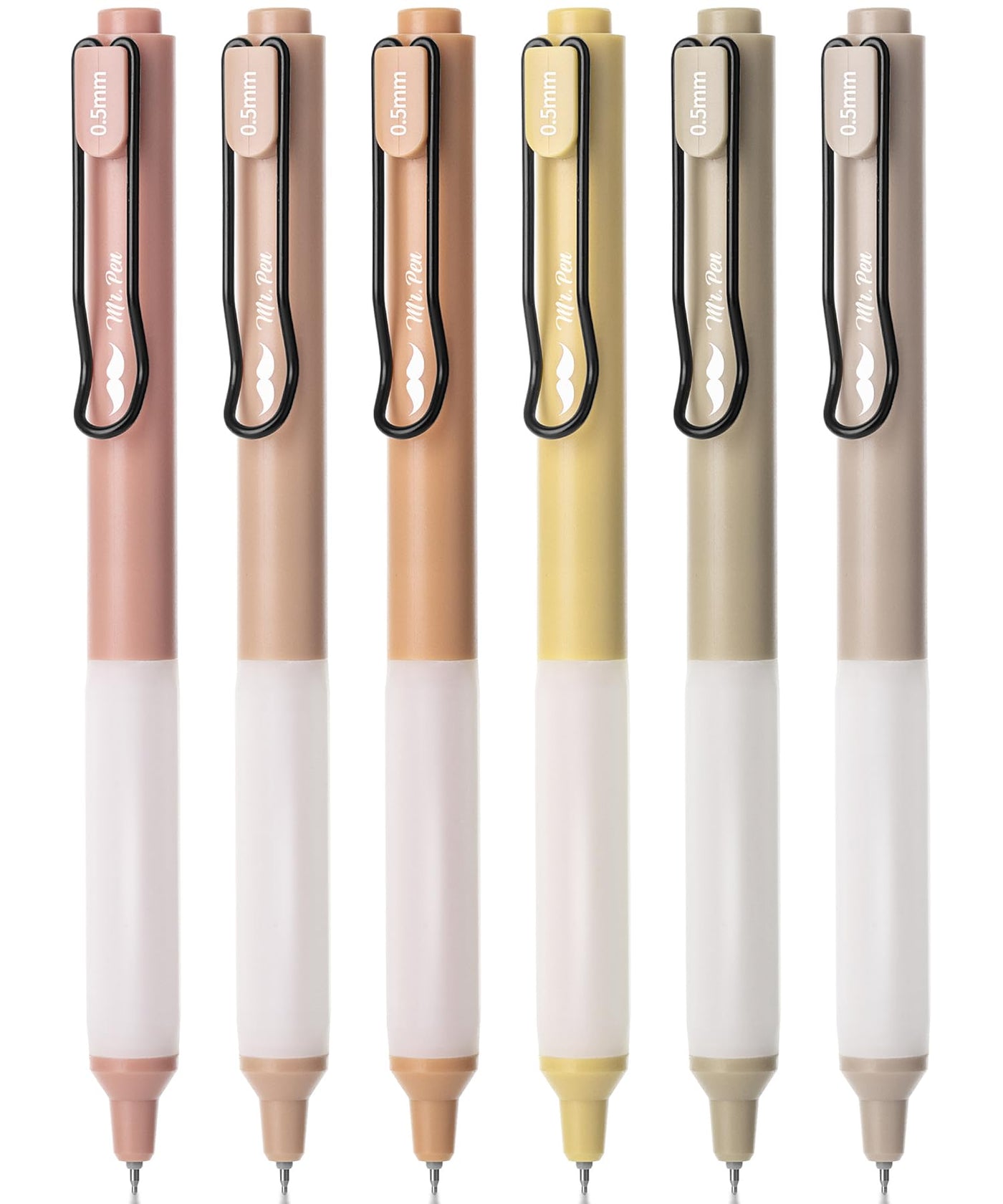 Mr. Pen Retractable Pens Come In A 6-Pack Featuring A Sophisticated, Muted Color Palette, Adding An Element Of Style To Your Writing Instruments. Each Pen Has A 0.5Mm Tip That Delivers Precise And Clean Lines, Perfect For Detailed Writing Tasks. The Black Ink In These Pens Offers A Smooth And Uninterrupted Writing Experience, Ideal For Note-Taking, Journaling, Or Professional Work. With A Retractable Design, These Pens Are Easy To Use With A Click, Protecting The Tip When Not In Use And Eliminating The Need For A Cap. The Pens Are Designed With Comfort In Mind, Featuring An Ergonomic Grip That Makes Them Comfortable To Hold And Use Over Extended Periods.