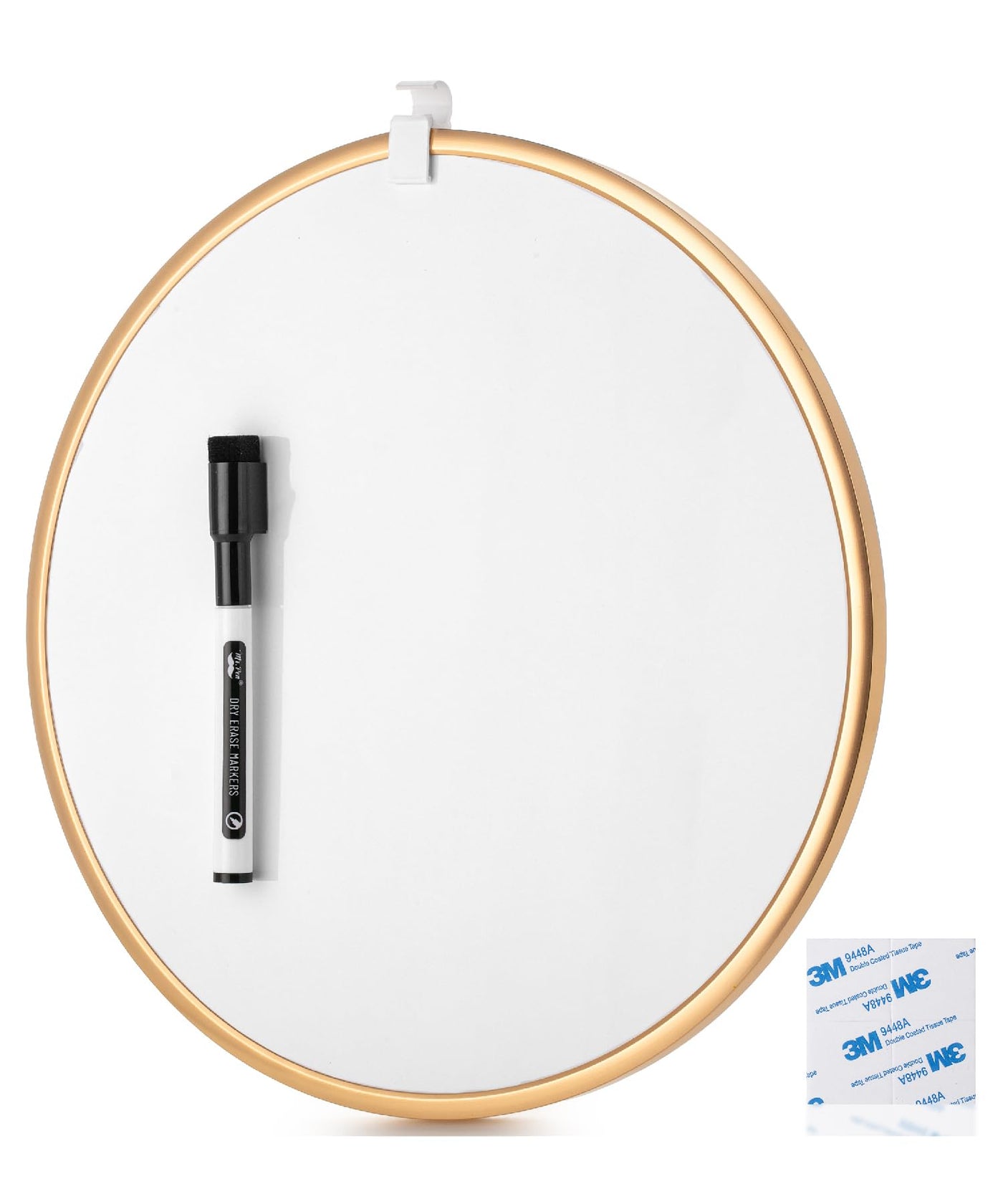 Mr. Pen- Round Dry Erase Board, 11.5 With A Black Dry Erase Marker, Gold Frame, Small White Board, White Board For Kids, Whit