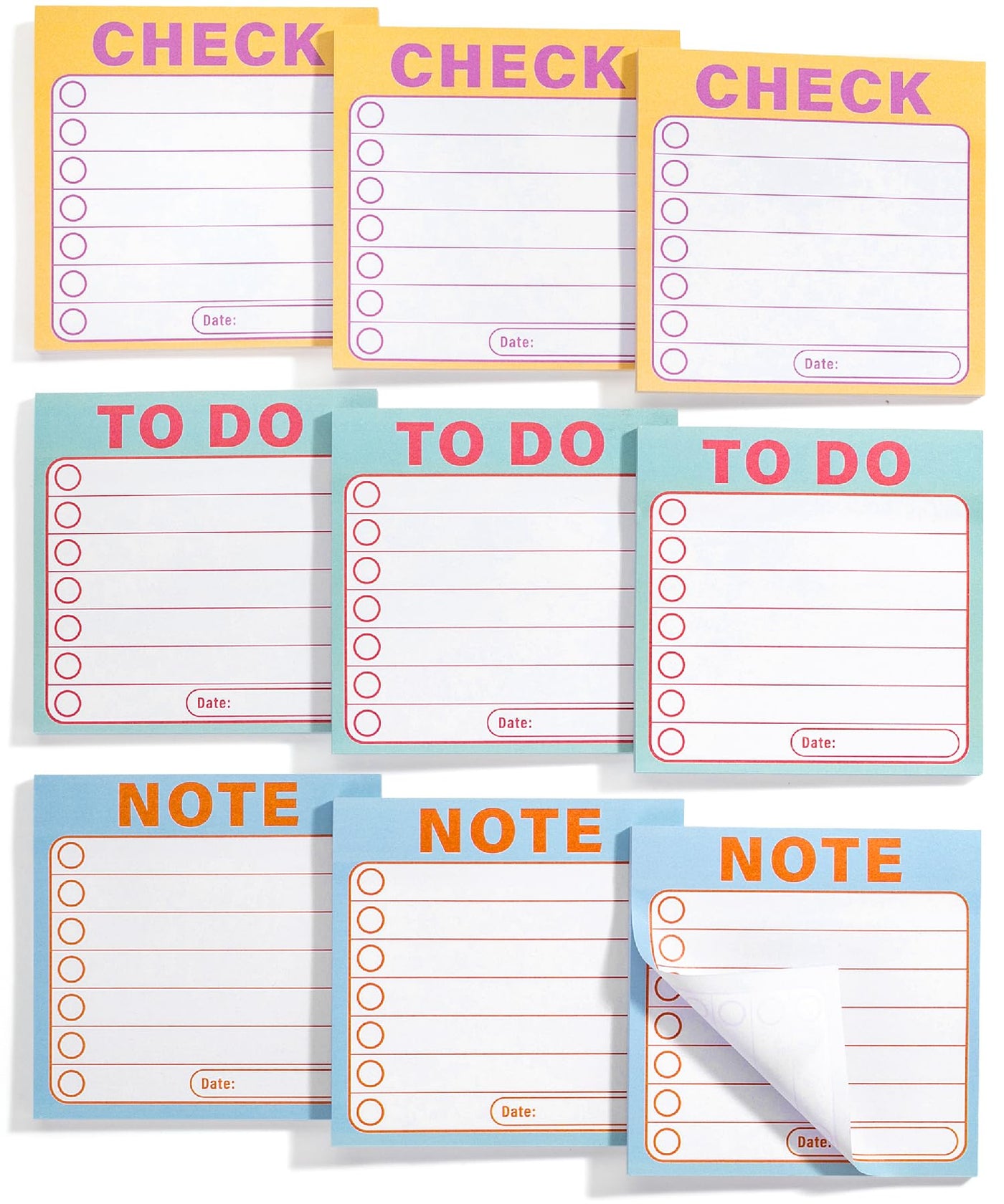 Mr. Pen Sticky Notes Set Contains 9 Pads With 50 Sheets Per Pad, All In A Convenient 3' X 3' Size, Ideal For Quick Notes And Reminders. Enjoy Three Distinct Designs Labeled 'Check,' 'To Do,' And 'Note,' Each With Dedicated Spaces For Dates And Lists, Enhancing Your Organizational Efficiency. Bright And Cheerful Colors Differentiate Each Type Of Note, Making Your Tasks Visually Distinct And Easier To Manage. Strong Yet Removable Adhesive Allows These Sticky Notes To Securely Attach To Any Surface And Be Easily Removed Without Leaving Any Residue. Perfect For Use In The Office, At Home, Or In The Classroom, These Sticky Notes Help Keep Your Thoughts Organized And Your Spaces Tidy.