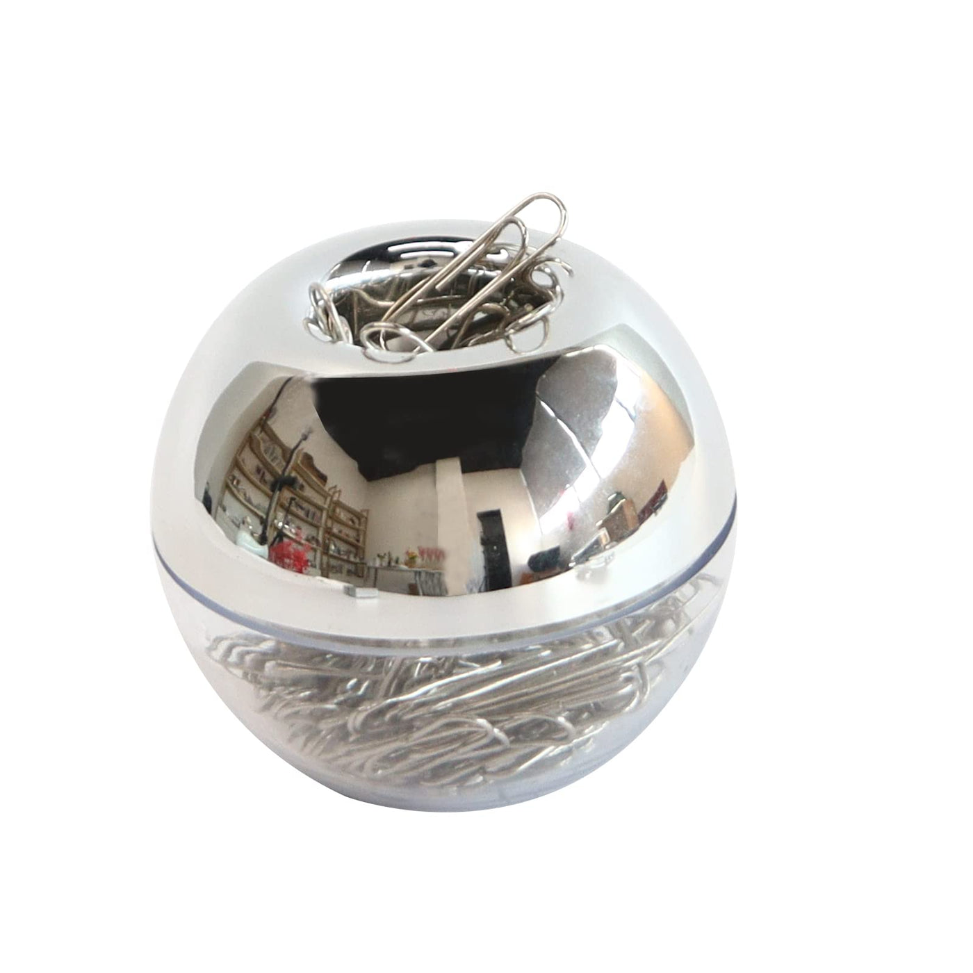 Multibey Silver Magnetic Paper Clip Holder Round Paperclip Dispenser With 100Pcs Silver Paper Clips For Desk Non-Skid Smooth Fin