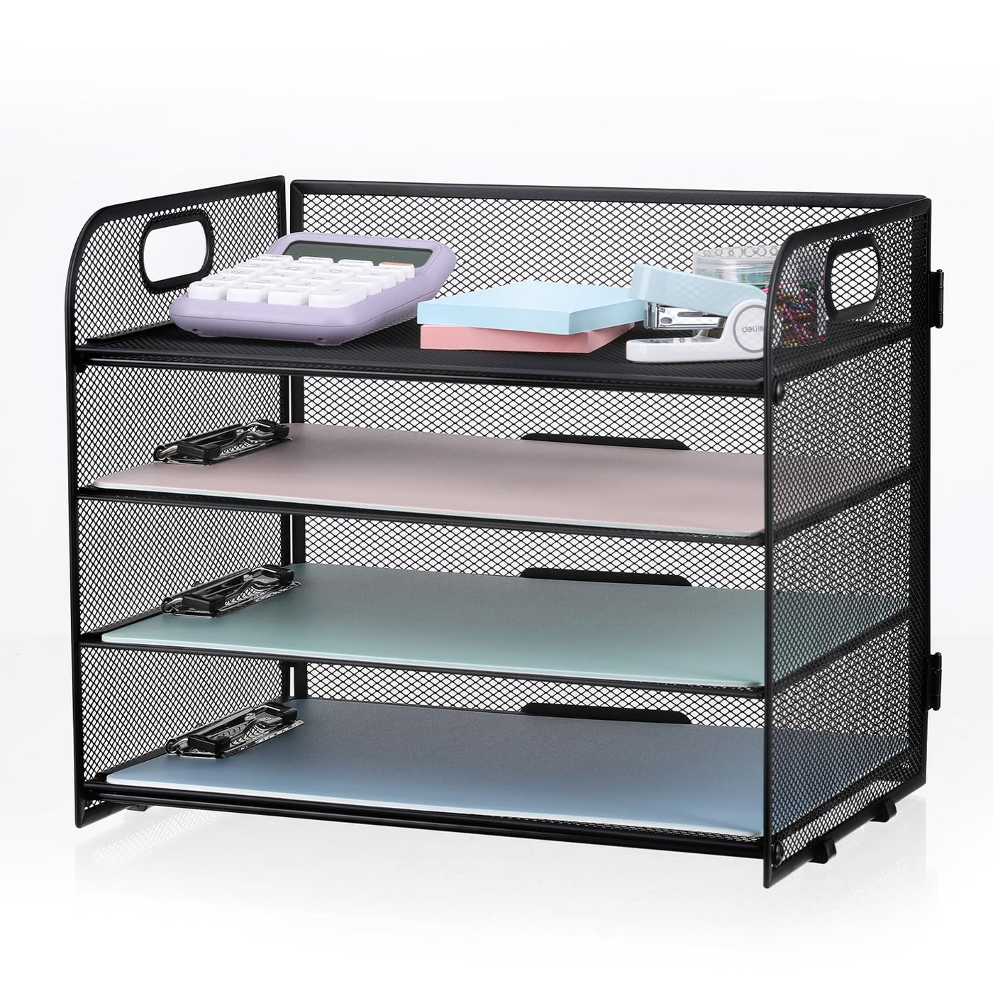 Ncxtkj 4-Tier Mesh Letter Tray Paper Organizer, Desk File Organizer With Handle - Black