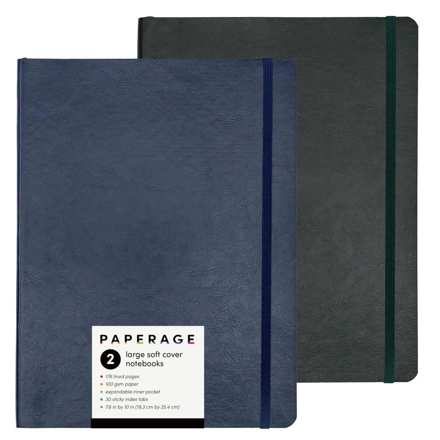 Paperage 2-Pack Softcover Lined Journal Notebook (Navy & Dark Green), 176 Pages, Large B5 College Ruled Notebook, 7.6 Inches X 1