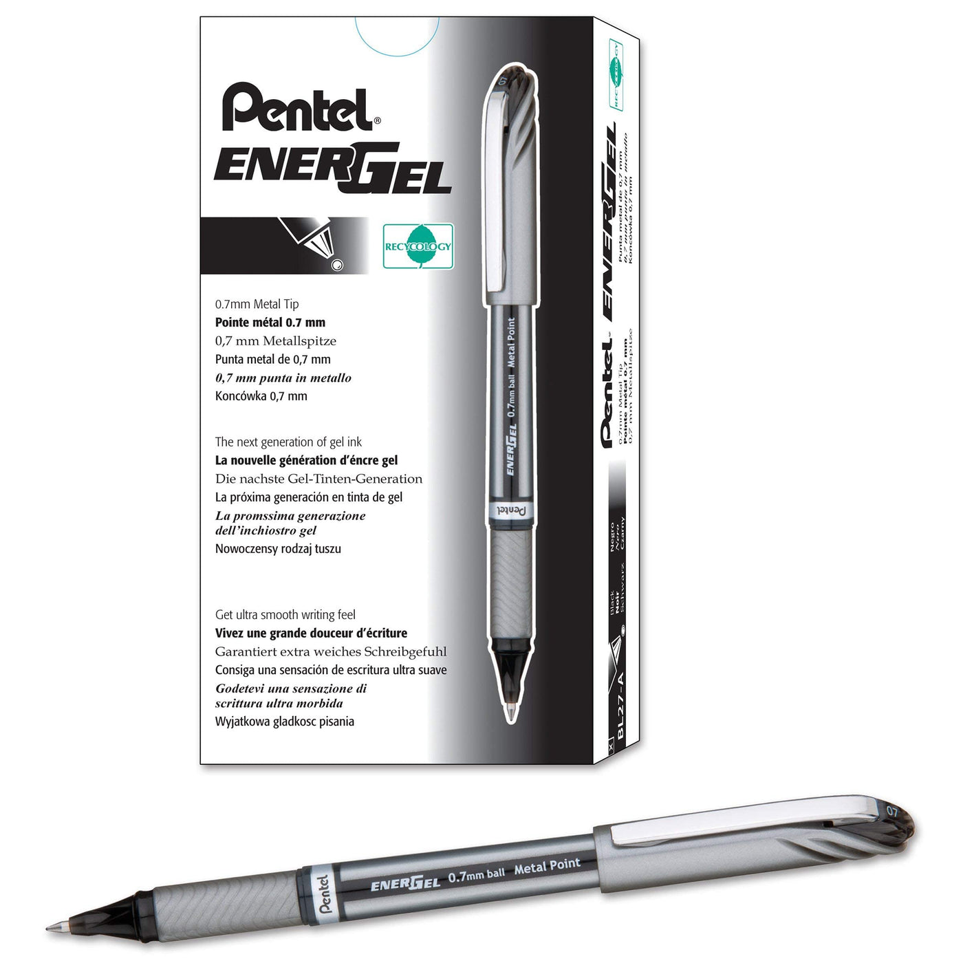 Pentel Ener-Gel Nv Liquid Gel Pen, 0.7Mm, Medium Line Capped, Metal Tip, Black Ink, Box Of 12 (Bl27-A)(Pack Of 48, 576 Count Tot