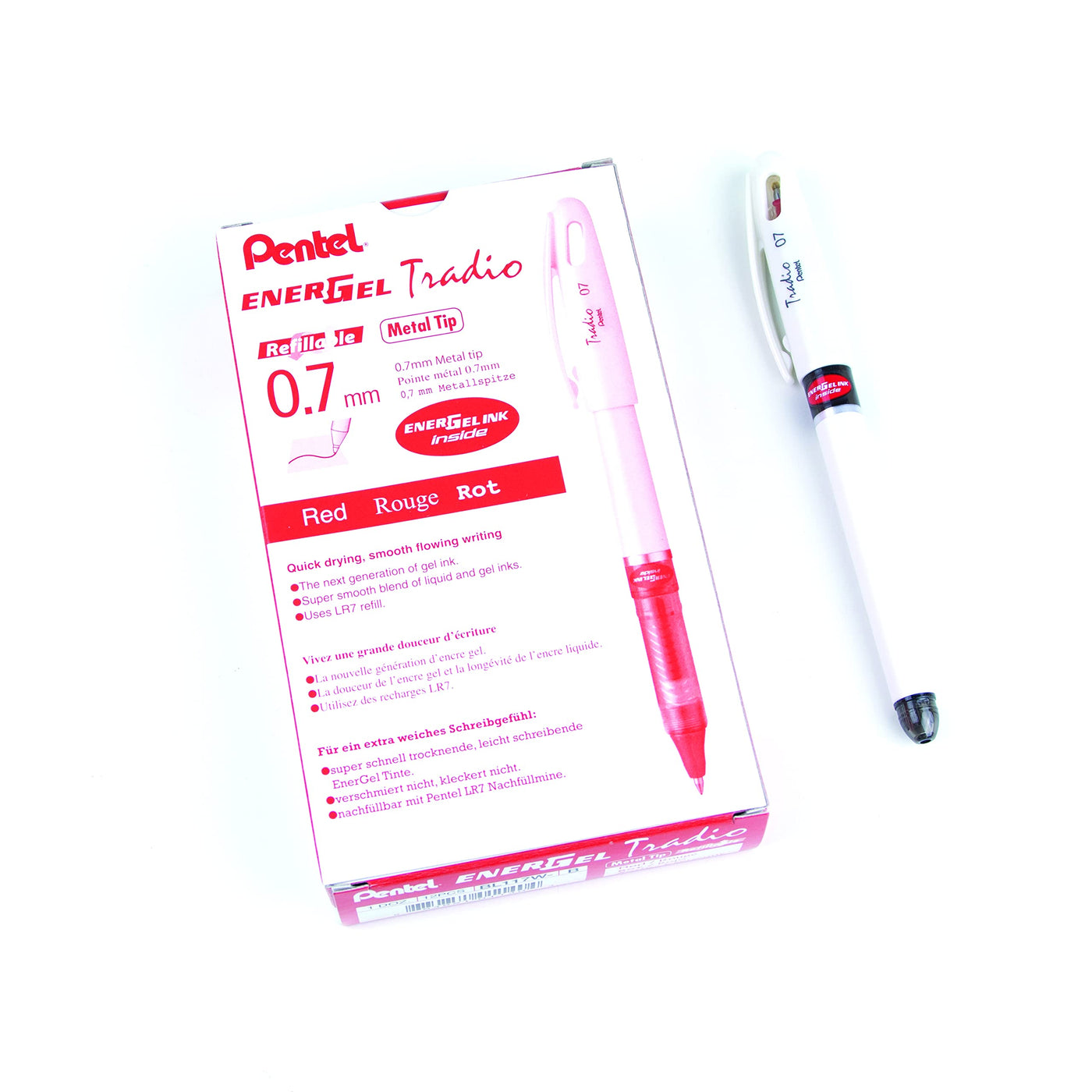 Pentel Energel Tradio Pearl Gel Ink Pen, (0.7Mm), Medium Point Capped, Red Ink, Box Of 12 (Bl117W-B)