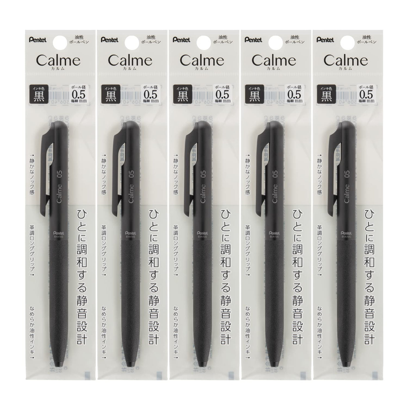 Pentel Oil Based Ballpoint Pen, Calme 0.5Mm, Black, Black Ink, 5 Count Xbxa105A-A