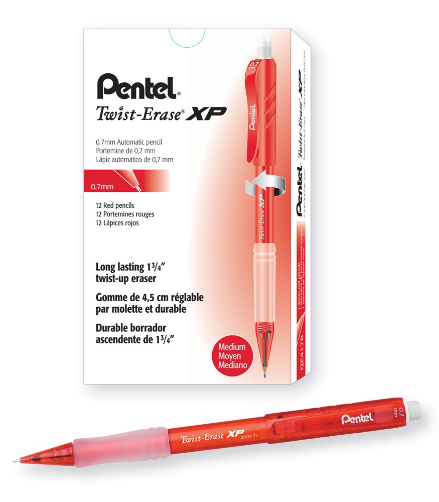 Pentel Twist Erase Express Automatic Pencil, 0.7Mm Lead Size, Red Barrel, Box Of 12 (Qe417B)