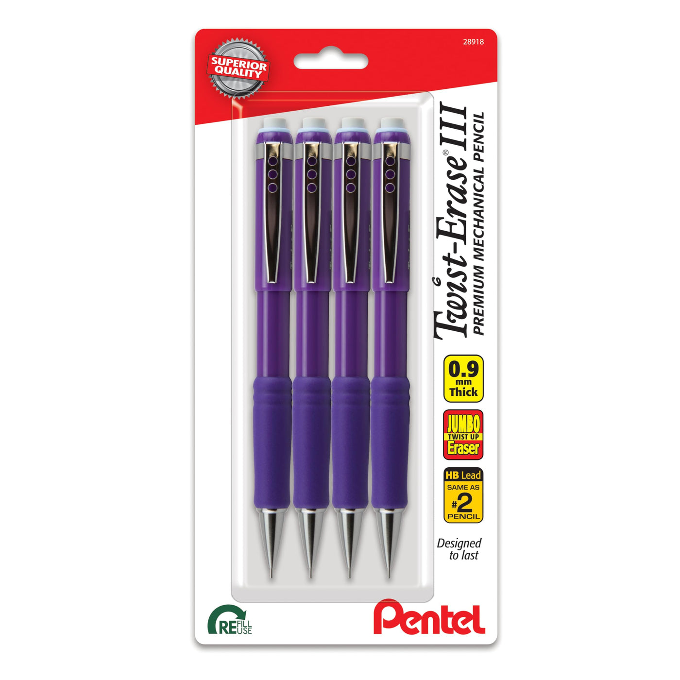 Pentel Twist-Erase Iii Mechanical Pencil, (0.9Mm), Bold Line, Violet Barrel, Pack Of 4 (Qe519Bp4V)
