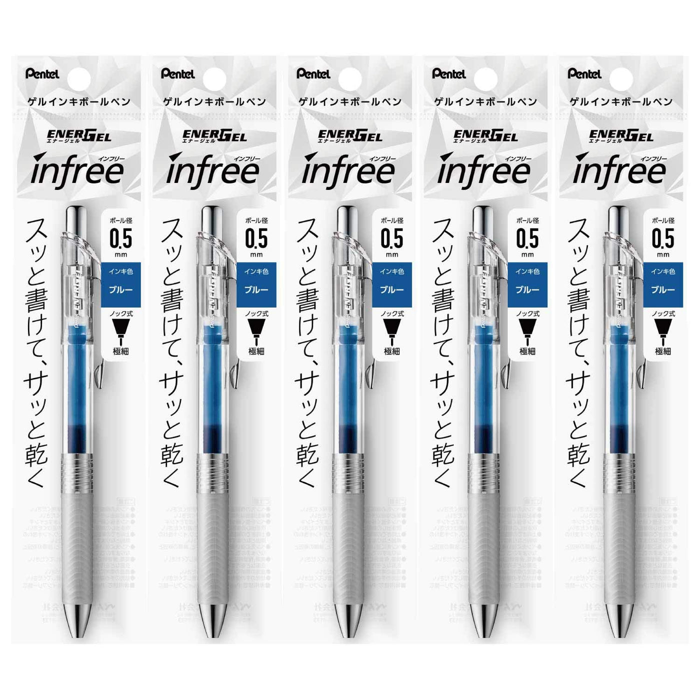 Pentel Xbln75Tl-C Gel Ink Ballpoint Pen, Energel In Free 0.5 Blue, Pack Of 5