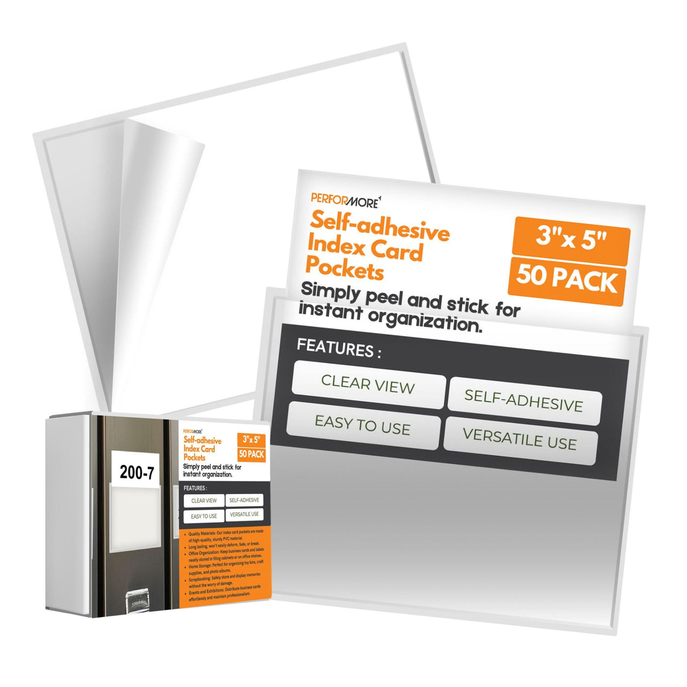Enhance Your Organization With Performore'S 50-Pack Of 3X5' Self-Adhesive Index Card Pockets. Designed For Convenience, These Top-Loading Pockets Securely Adhere To Surfaces, Keeping Your Index Cards Easily Accessible While Maintaining Order. Ideal For Home, Office, Or Educational Use, They Provide A Practical Solution For Storing And Displaying Essential Information. Upgrade Your Efficiency With Performore'S Reliable And Versatile Index Card Pockets.