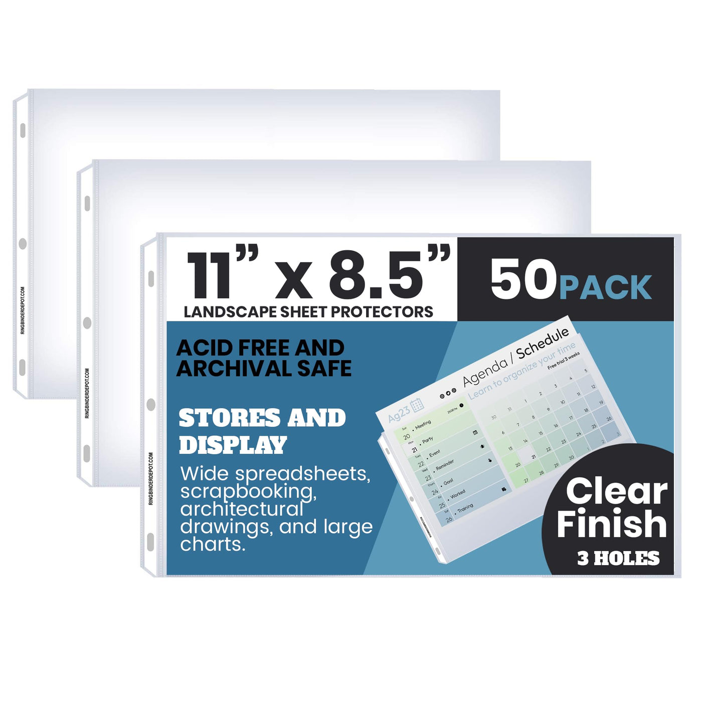 Performore 50 Sheet Protectors, Landscape Clear Page 8.5 X 11 Inch For 3 Ring Binder, Plastic Sheet Sleeves, Top Loading With 3