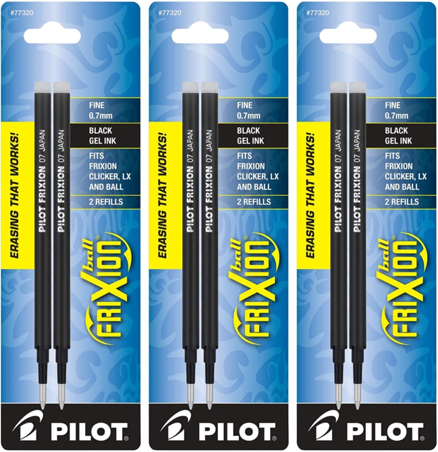 Pilot, Frixion Ball Gel Ink Refills For Erasable Pens, Fine Point 0.7 Mm, Pack Of 6 (3 Packs Of 2), Black