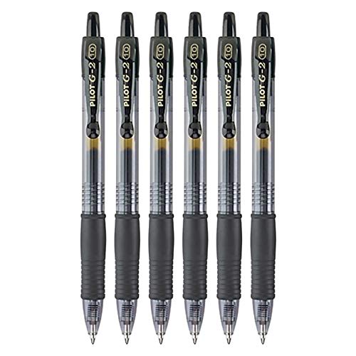 Pilot G2 Retractable Rollerball Gel Pens, Bold Point, 1.0Mm, Black Ink, 6 Count