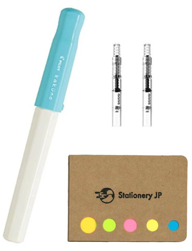 Pilot Kakuno Fountain Pen, Extra Fine Nib, Soft Blue Body, Pilot Fountain Pen Converter, Con-40, 2-Pieces, Sticky Notes Value Set Set Contains 1 X Pilot Kakuno Fountain Pen, Extra Fine Nib, Soft Blue Body + 2 X Pilot Fountain Pen Converter, Con-40 + 1 X Compact 5-Color Sticky Notes.[Pilot Kakuno Fountain Pen - Soft Blue - Extra Fine Nib] Model Number: Pilot Fka-1Sr-Slefbody Color: Whitebody Material: Plasticcapped Or Retractable: Capped - Snap Onclippable: Noconverter Included: Nodiameter(Grip): 11.6 Mmdiameter(Max): 13.3 Mmeyedropper Convertible: Yes - With Modificationfilling Mechanism: Cartridge - Proprietary, Convertergrip Color: Cleargrip Material: Plasticlength(Capped): 13.1 Cm / 5.2 Incheslength(Posted): 15.9 Cm / 6.3 Incheslength(Uncapped): 12.7 Cm / 5.0 Inchesnib Color: Silvernib Material: Steelnib Size: Extra Fineink Color: Blacktip Replaceable: Noweight(Barrel): 0.30 Oz / 9 Gramsweight(Cap): 0.15 Oz / 4 Gramsweight(Whole Pen): 0.45 Oz / 13 Grams[Pilot Con-40 Fountain Pen Converter] Model Number: Pilot Con-40Body Color: Cleardiameter(Max): 7.2 Mmsize(Length): 6.0 Cm / 2.4 Inchesweight: 0.06 Oz / 2 Grams[Stationery Jp Compact 5-Color Sticky Notes 100 Pieces Ecology Type] Model Number: Stationery Jp Nbm02454Color: Orange, Light Green, Pink, Yelow, Light Bluesize: 4.3 X 2.4 X 0.1 Inches